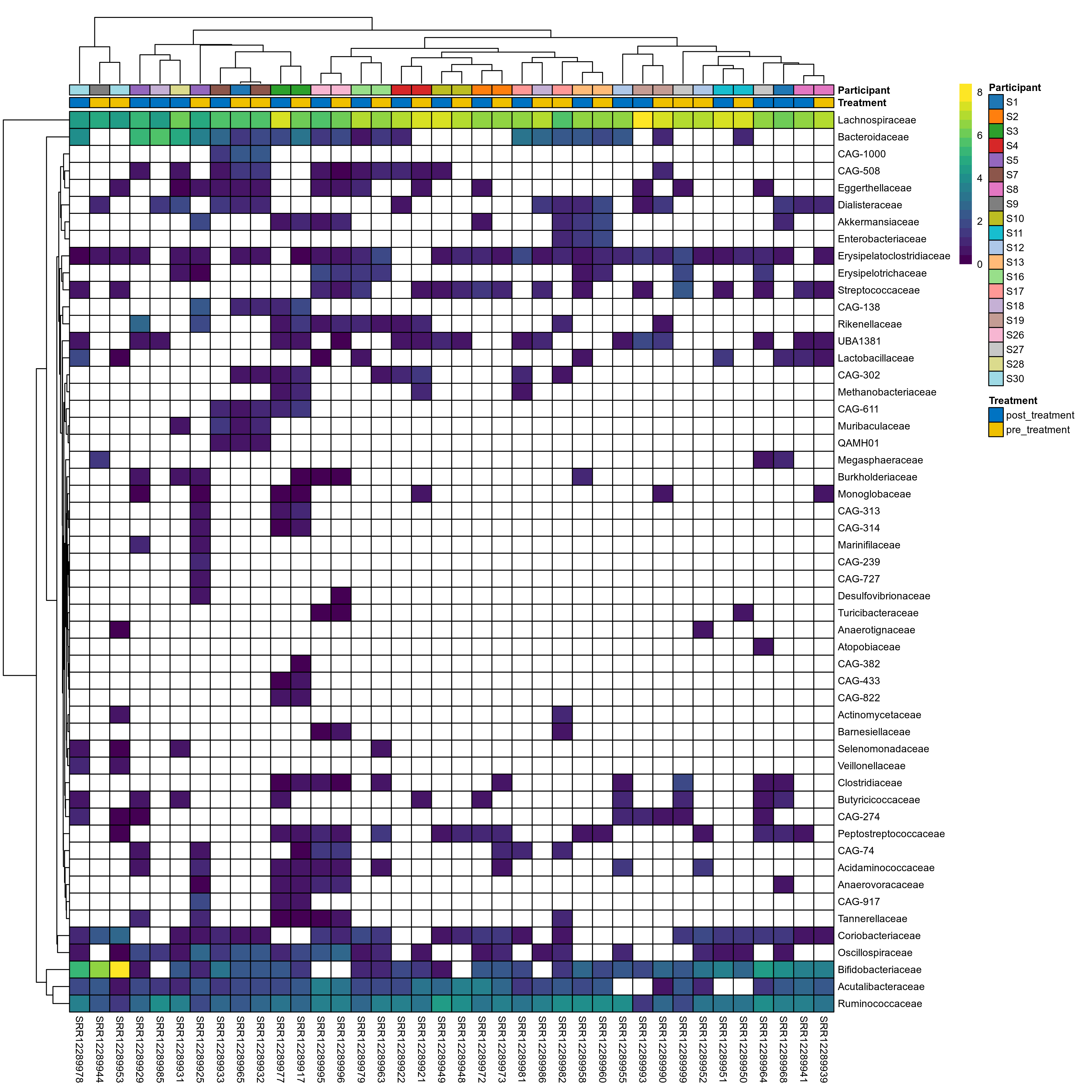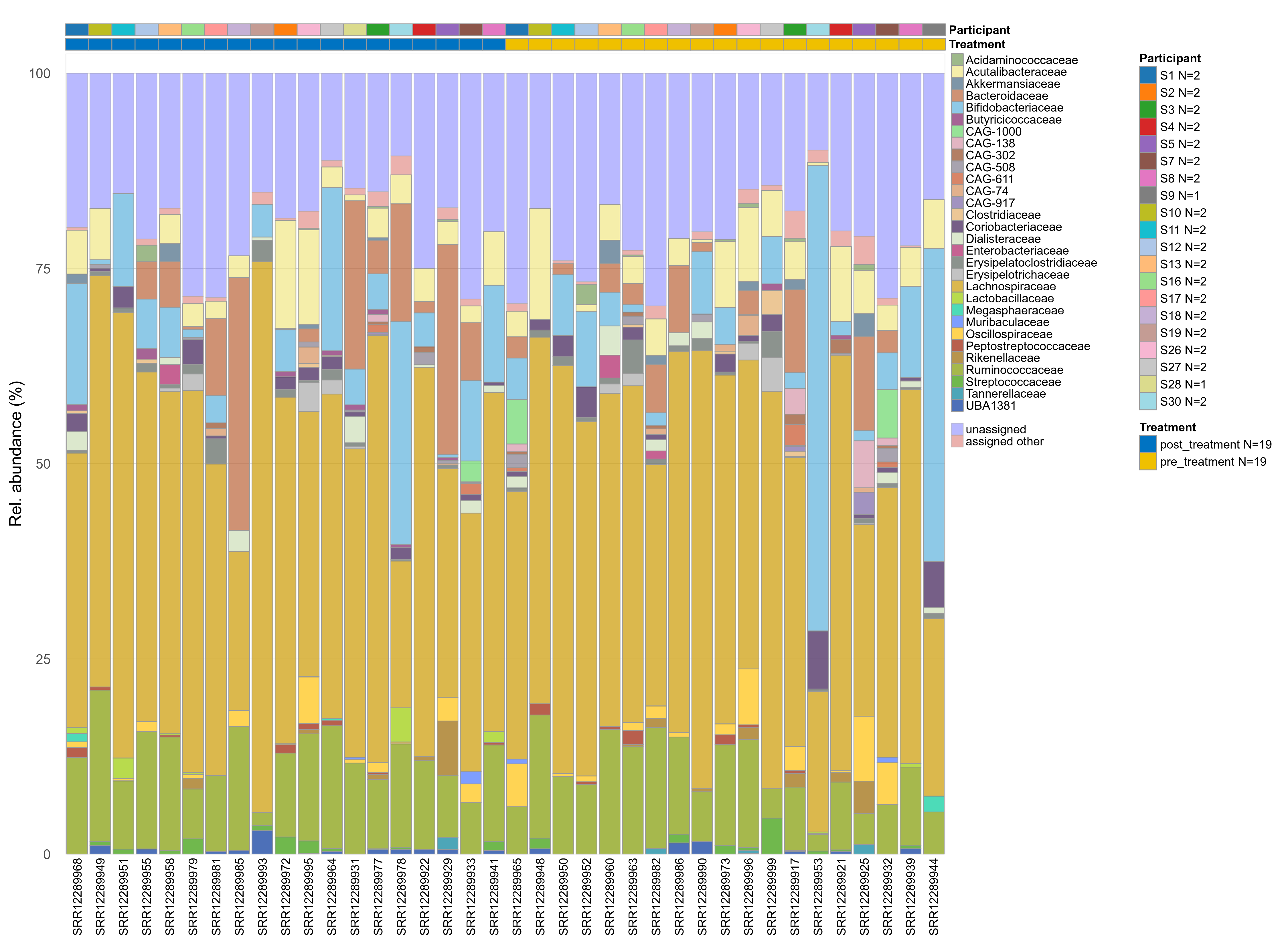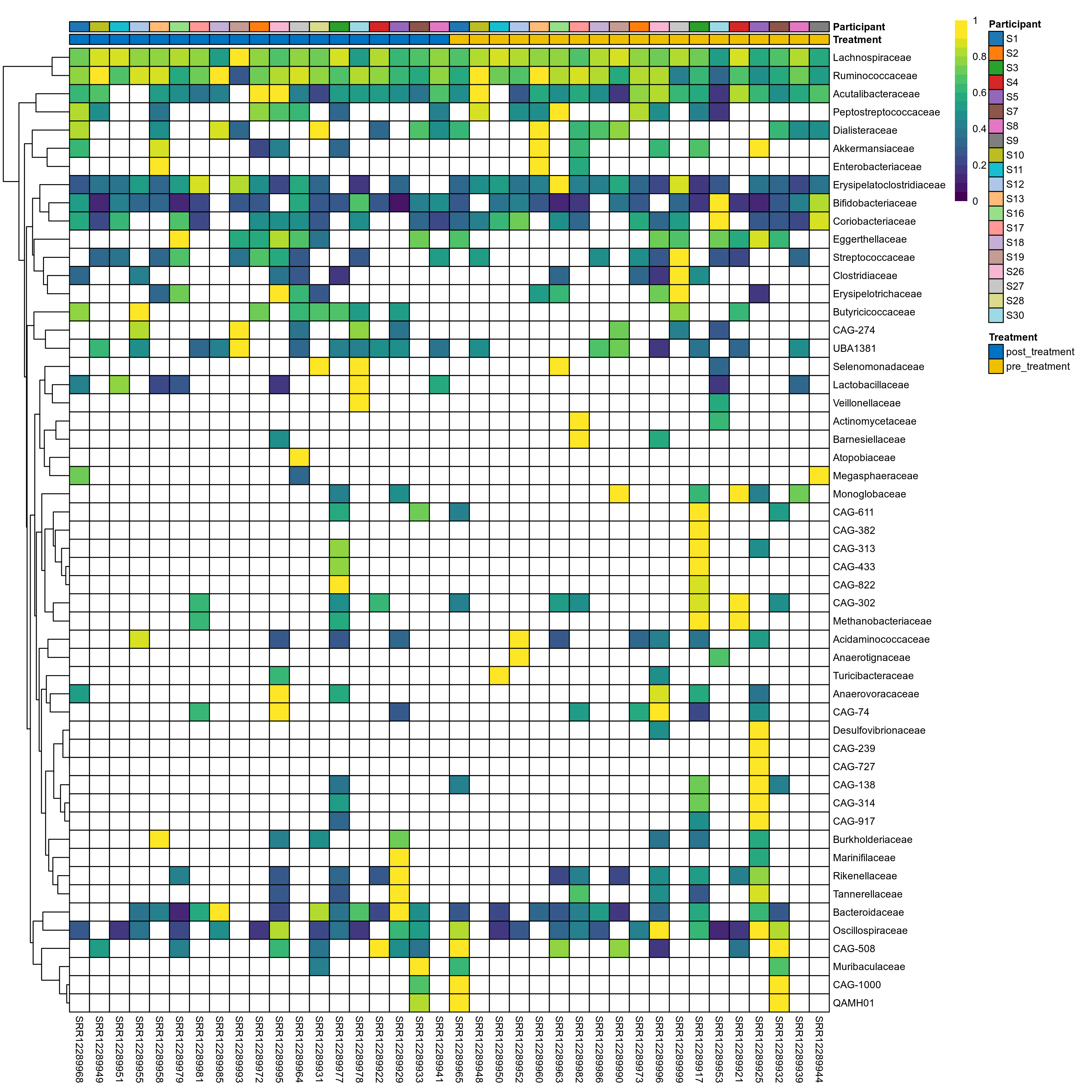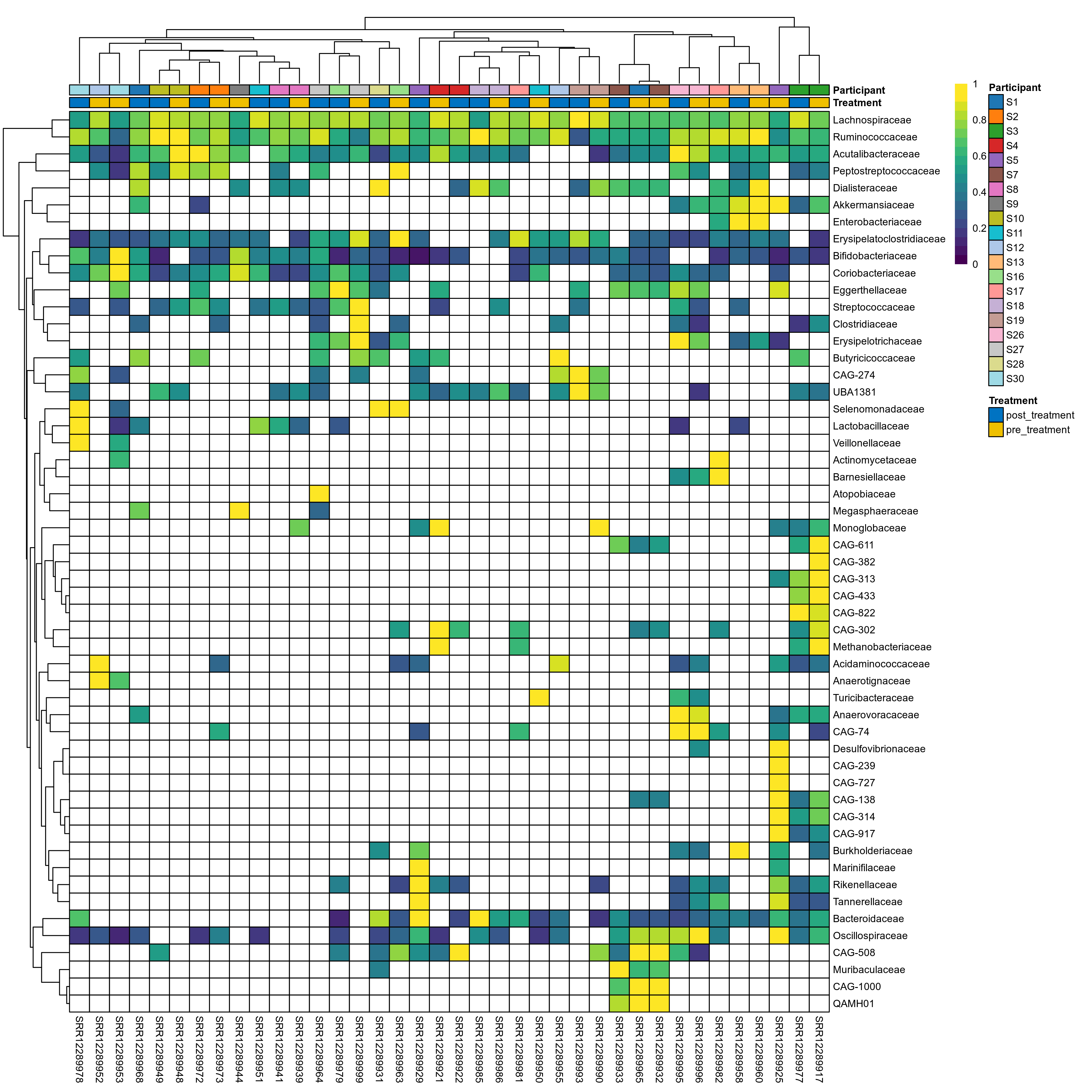 | Coriobacteriaceae | Coriobacteriaceae | 0.14 | 0.44 | 1 | 0.21 | 0.56 | 1 | 1.9 | 1.3 | 0.65 | 0.91 | 0.44 | 1 | 1.6 | 0.68 | 2.1 | 0.81 | 26 / 38 (68%) | 12 / 19 (63%) | 14 / 19 (74%) | 0.632 | 0.737 |