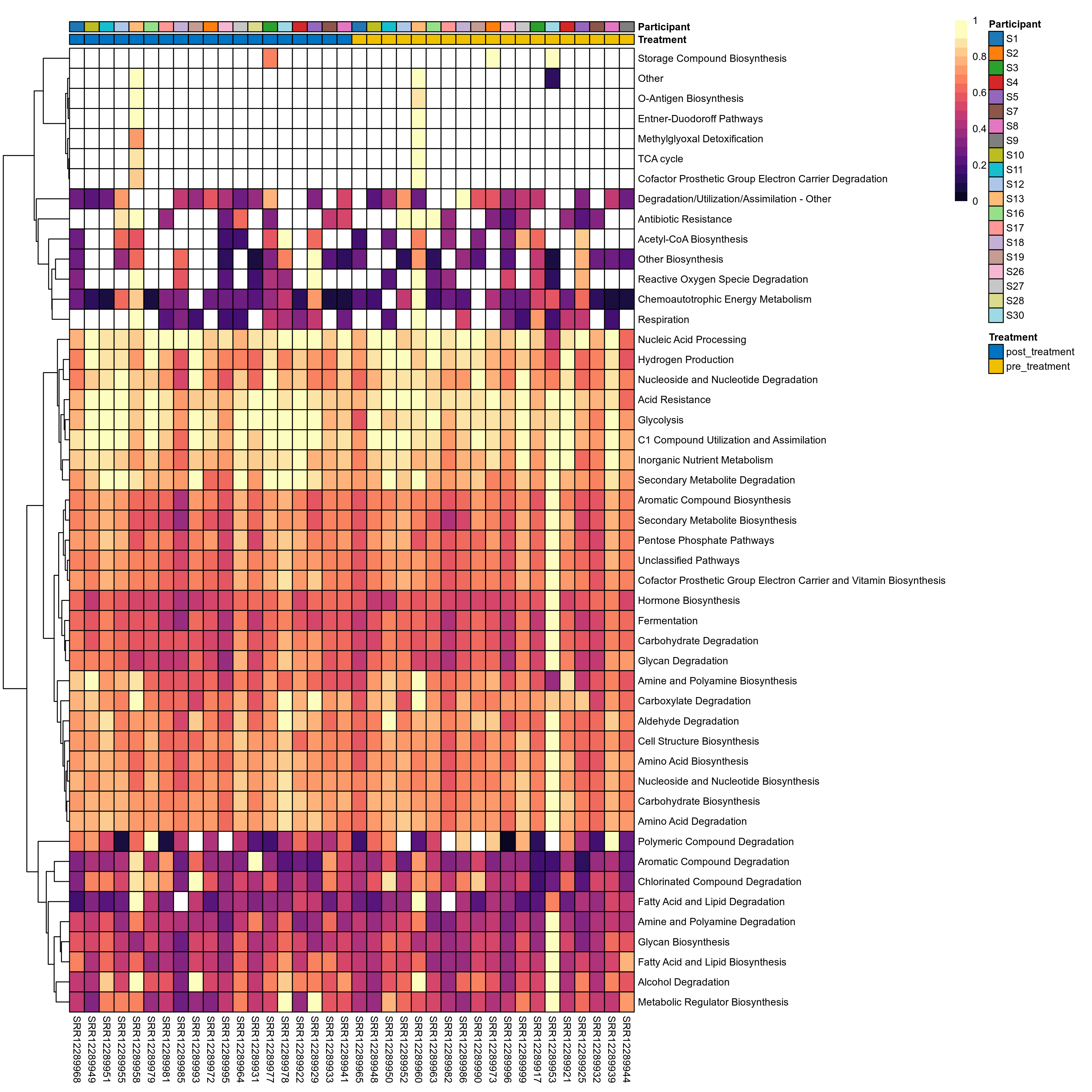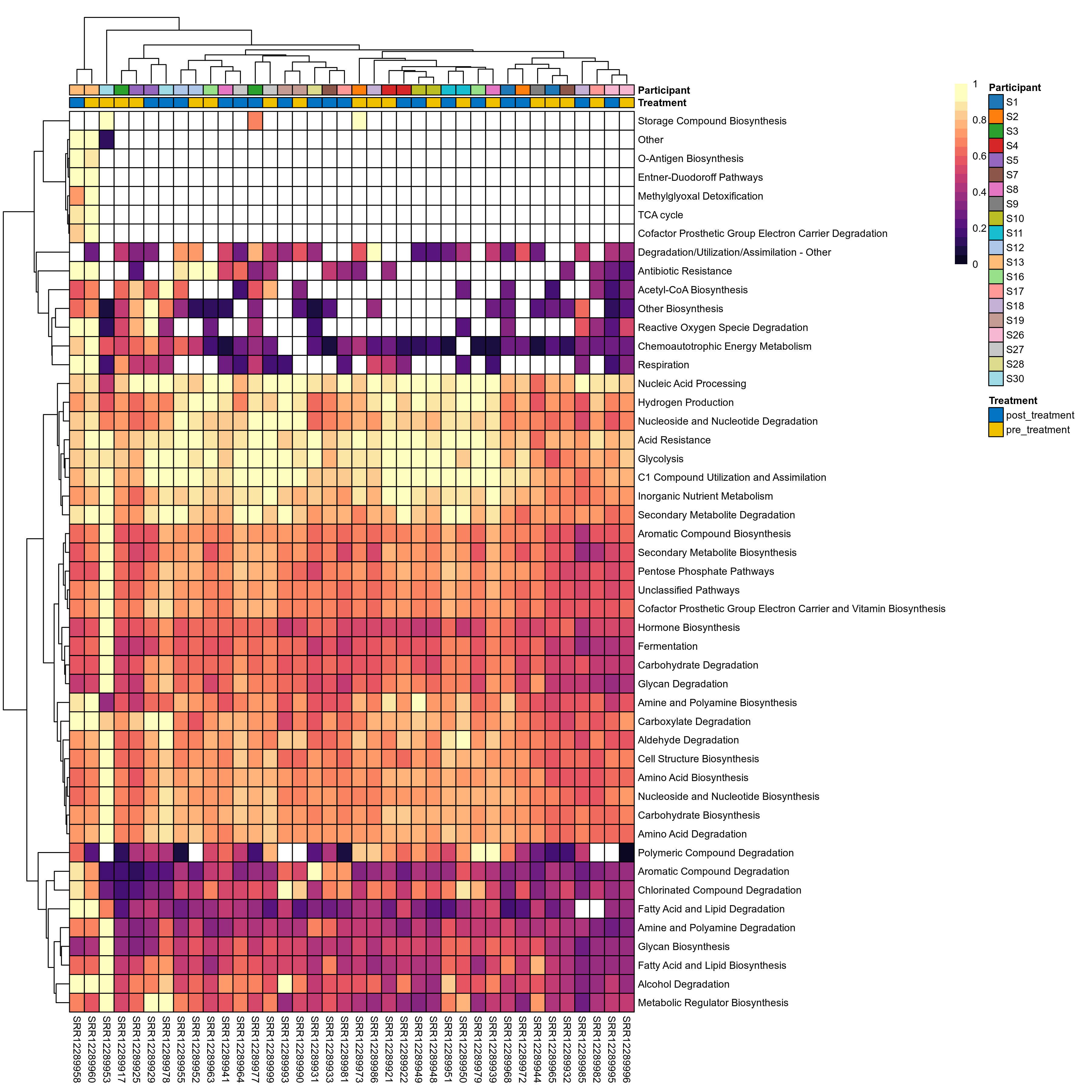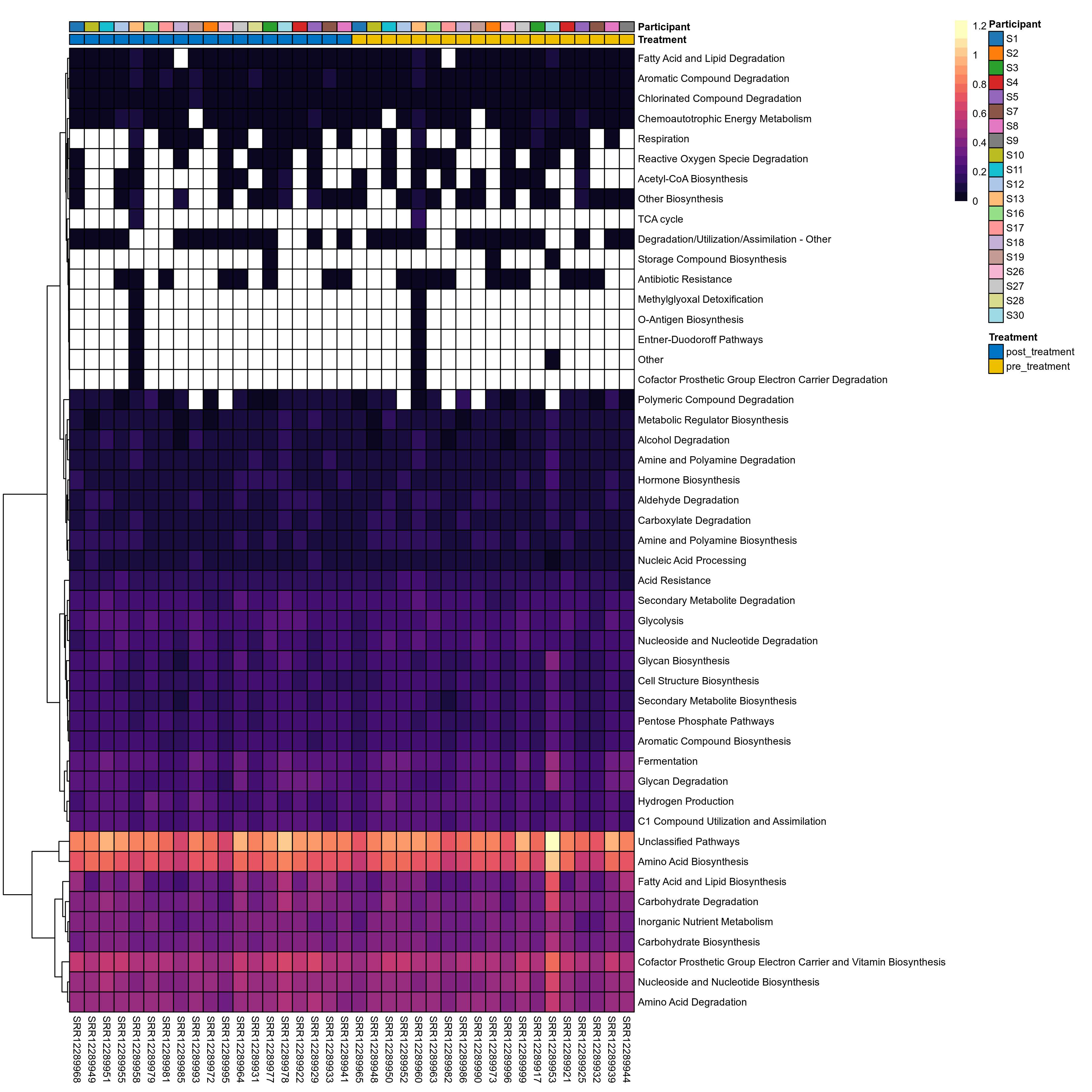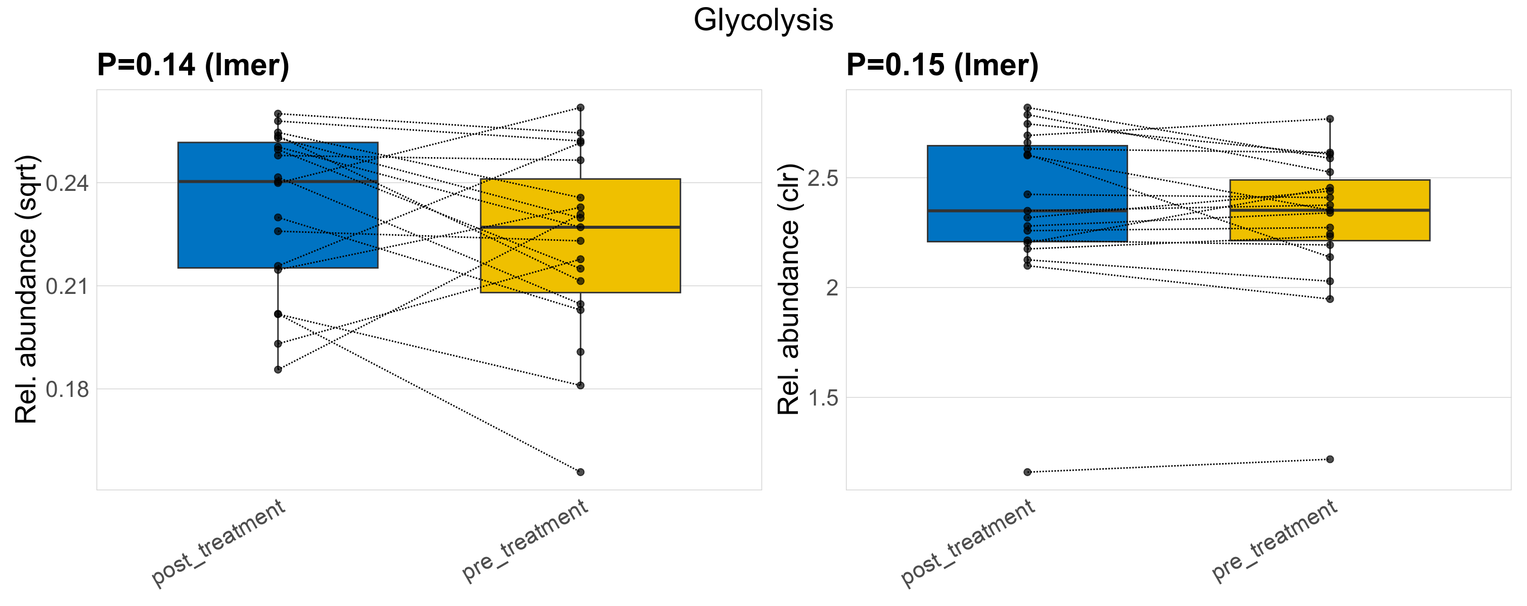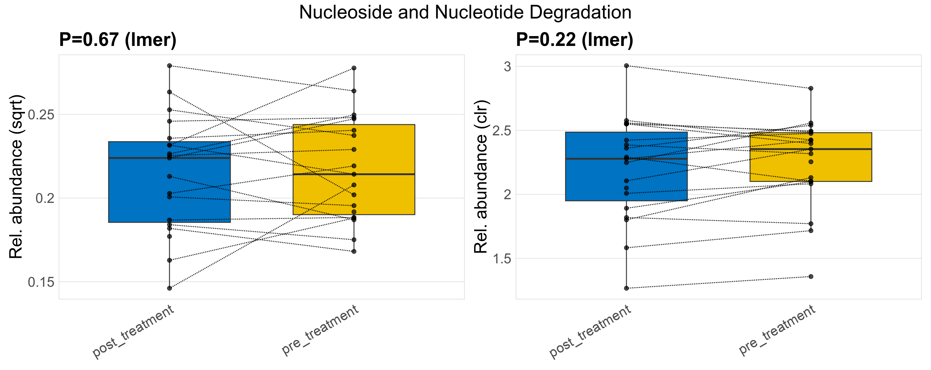 | Function | P lmer condition effect (sqrt) | FDR lmer condition effect (sqrt) | Pbonf lmer condition effect (sqrt) | P lmer condition effect (clr) | FDR lmer condition effect (clr) | Pbonf lmer condition effect (clr) | Mean Pos | Mean Abundance | Median Abundance | Mean Treatmentpost_treatment | Median Treatmentpost_treatment | SD Treatmentpost_treatment | Mean Treatmentpre_treatment | Median Treatmentpre_treatment | SD Treatmentpre_treatment | Fold Change Log2(Treatmentpre_treatment/Treatmentpost_treatment) | Positive samples | Positive Treatmentpost_treatment | Positive Treatmentpre_treatment | Positive_Treatmentpost_treatment_percent | Positive_Treatmentpre_treatment_percent |