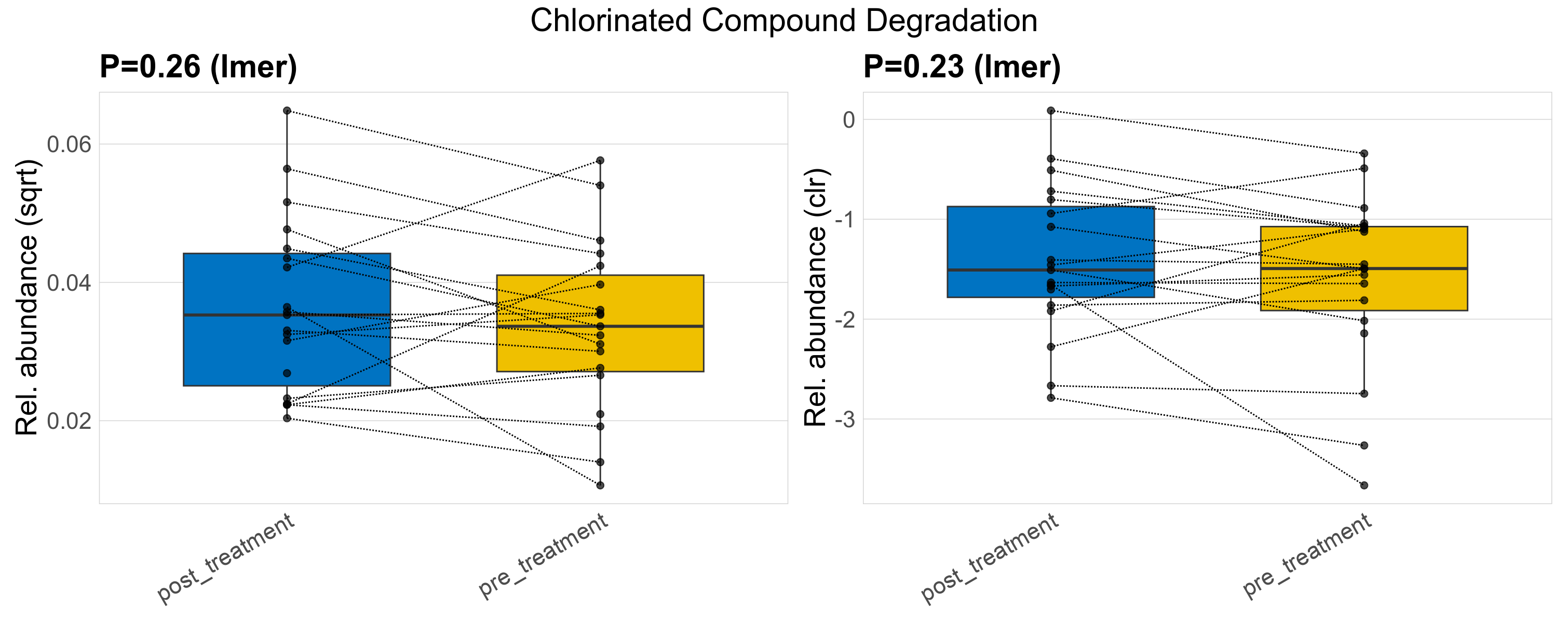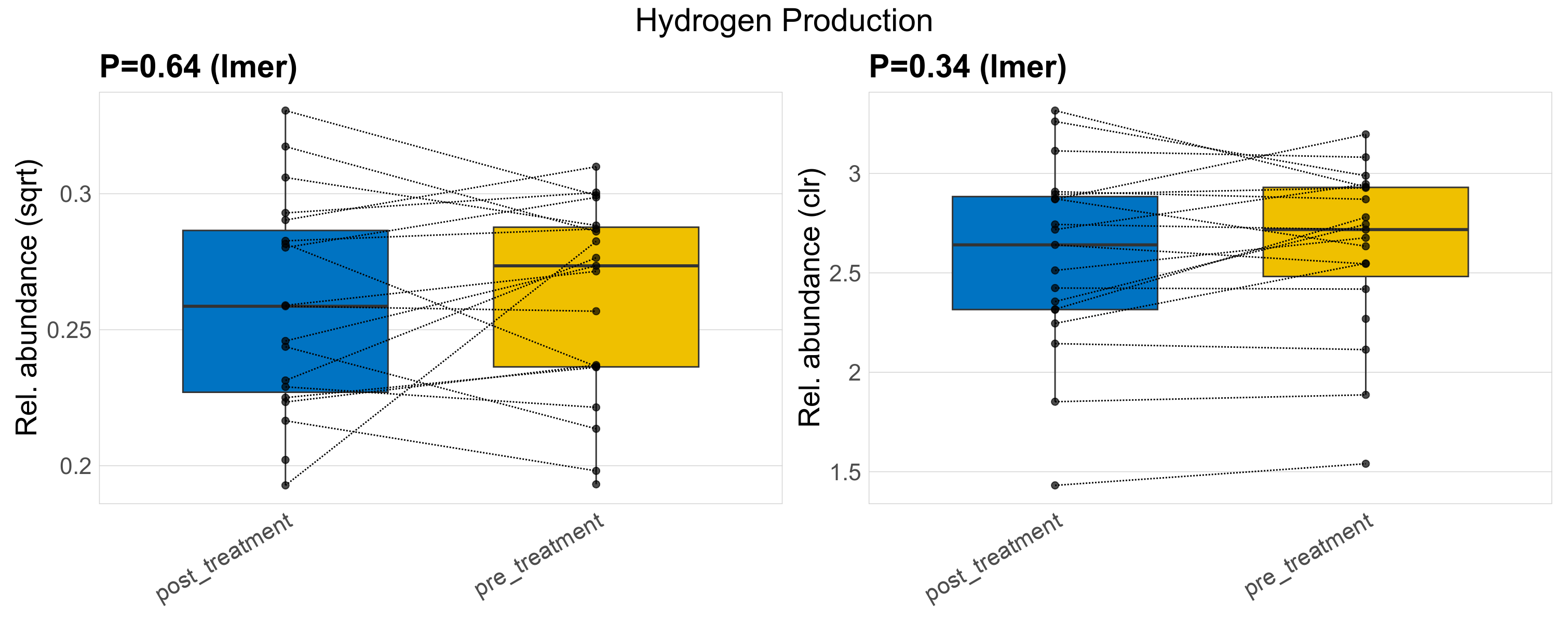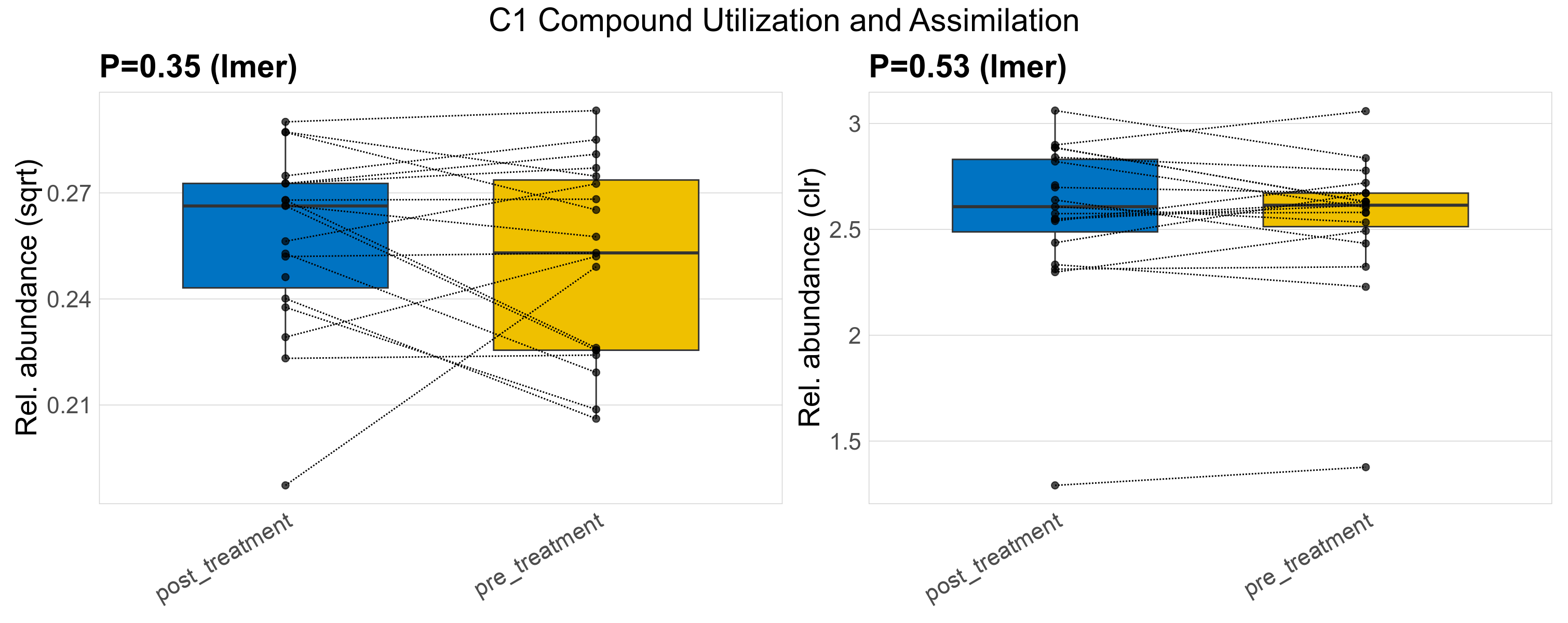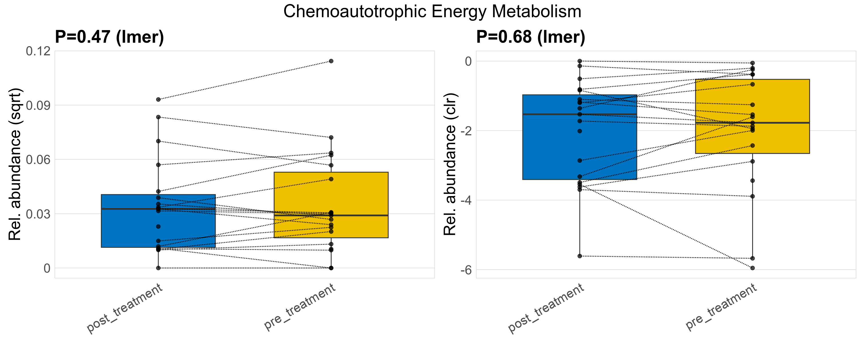 P lmer condition effect (clr): Differentially abundant functions were identified by linear mixed effect regression without confounders. Random effects: Participant (intercept). Fixed effects: Treatment. Effect tested: Treatment.