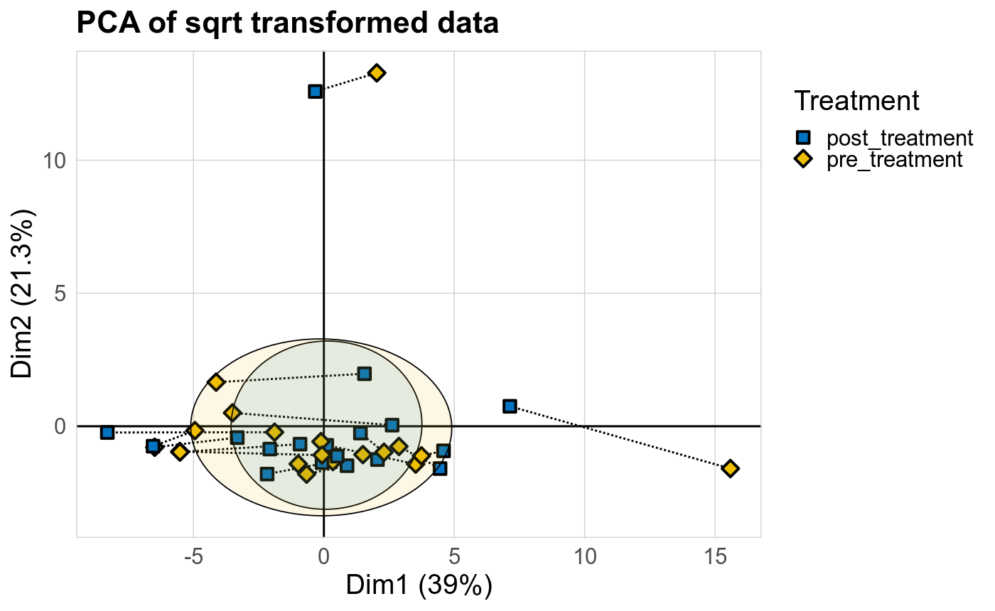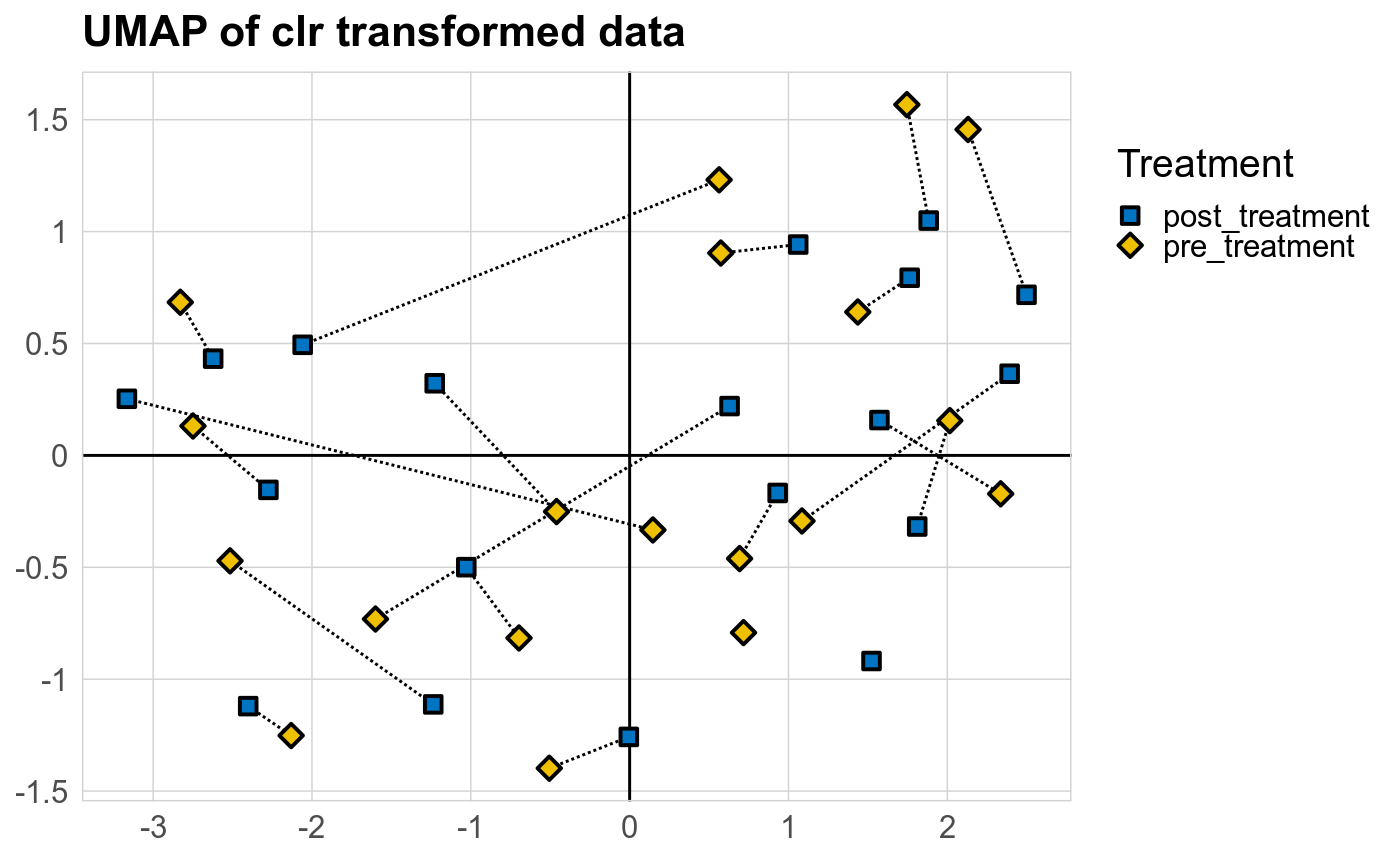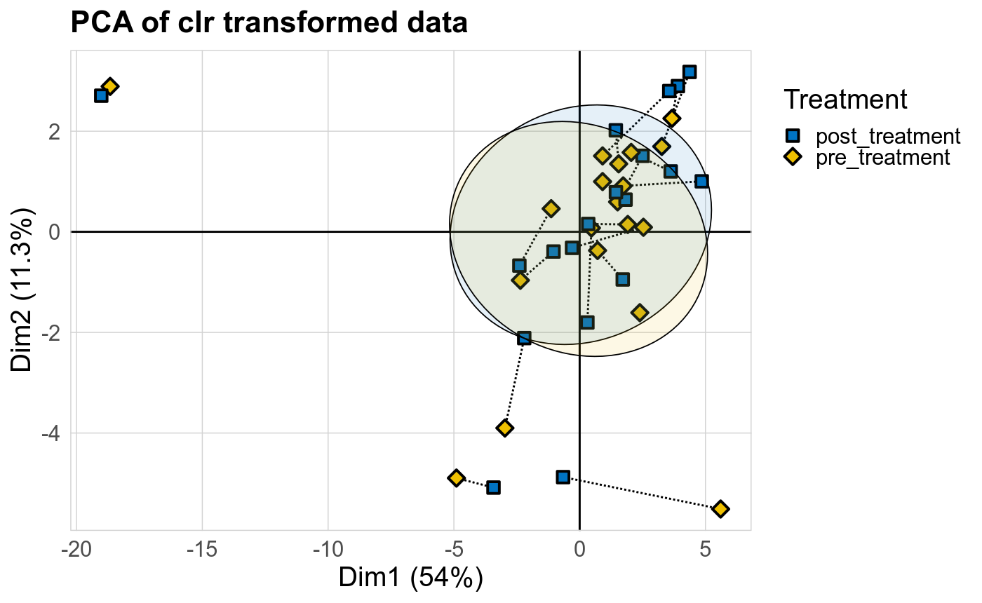 Microbial functions were analyzed using supervised and unsupervised multivariate techniques. Functional profiles were ordinated using the unsupervised methods Principal Coordinates Analysis (PCoA), Non-Metric Multidimensional Scaling (NMDS) and Principal Component Analysis (PCA). The supervised methods Adonis and Redundancy analysis (RDA) were used to assess if variance in the functional profiles was significantly associated with the study condition. A guide explaining these methods can be found here. Sparse Partial Least Square Discriminant Analysis (sPLS-DA) from the MixMc package was additionaly used to extract features associated with the condition of interest.