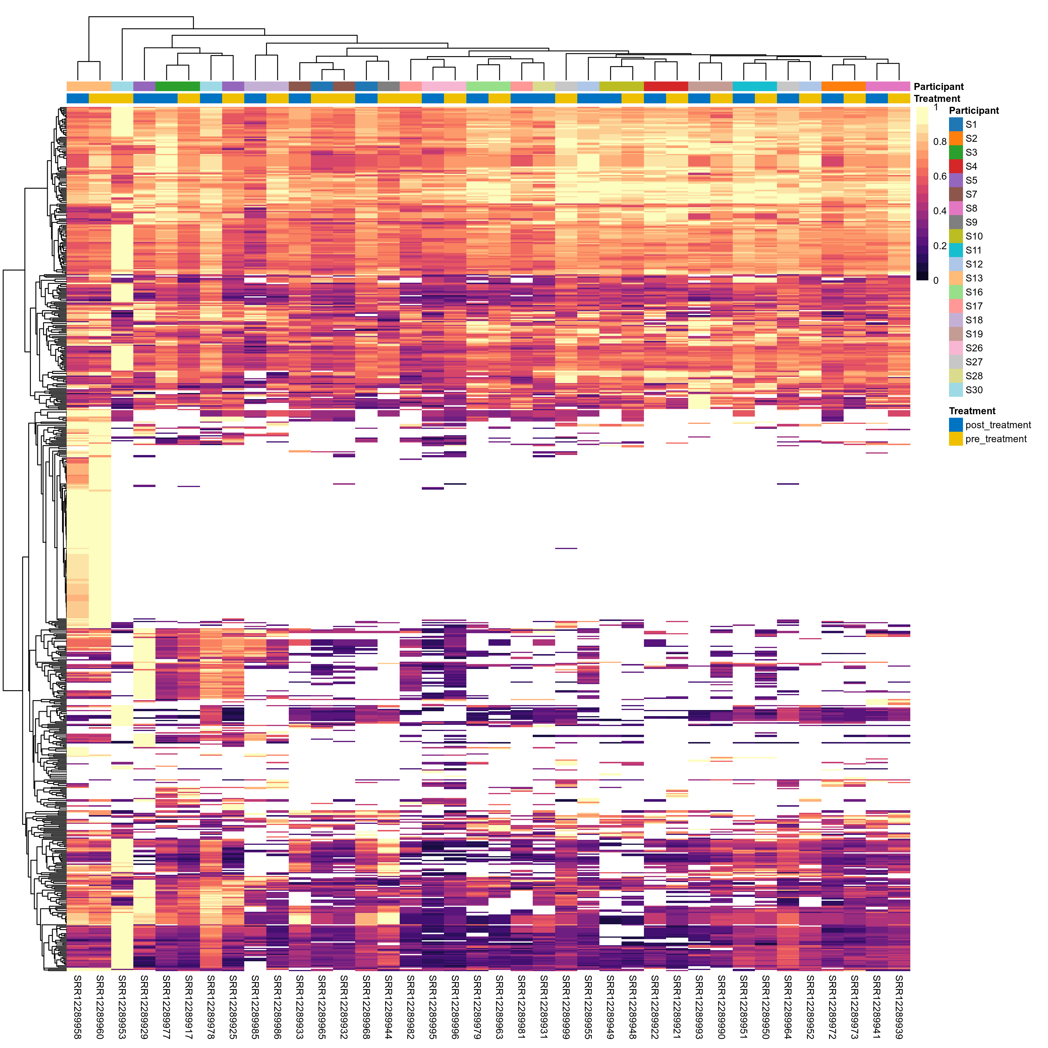 | Function | P lmer condition effect (sqrt) | FDR lmer condition effect (sqrt) | Pbonf lmer condition effect (sqrt) | P lmer condition effect (clr) | FDR lmer condition effect (clr) | Pbonf lmer condition effect (clr) | Mean Pos | Mean Abundance | Median Abundance | Mean Treatmentpost_treatment | Median Treatmentpost_treatment | SD Treatmentpost_treatment | Mean Treatmentpre_treatment | Median Treatmentpre_treatment | SD Treatmentpre_treatment | Fold Change Log2(Treatmentpre_treatment/Treatmentpost_treatment) | Positive samples | Positive Treatmentpost_treatment | Positive Treatmentpre_treatment | Positive_Treatmentpost_treatment_percent | Positive_Treatmentpre_treatment_percent |