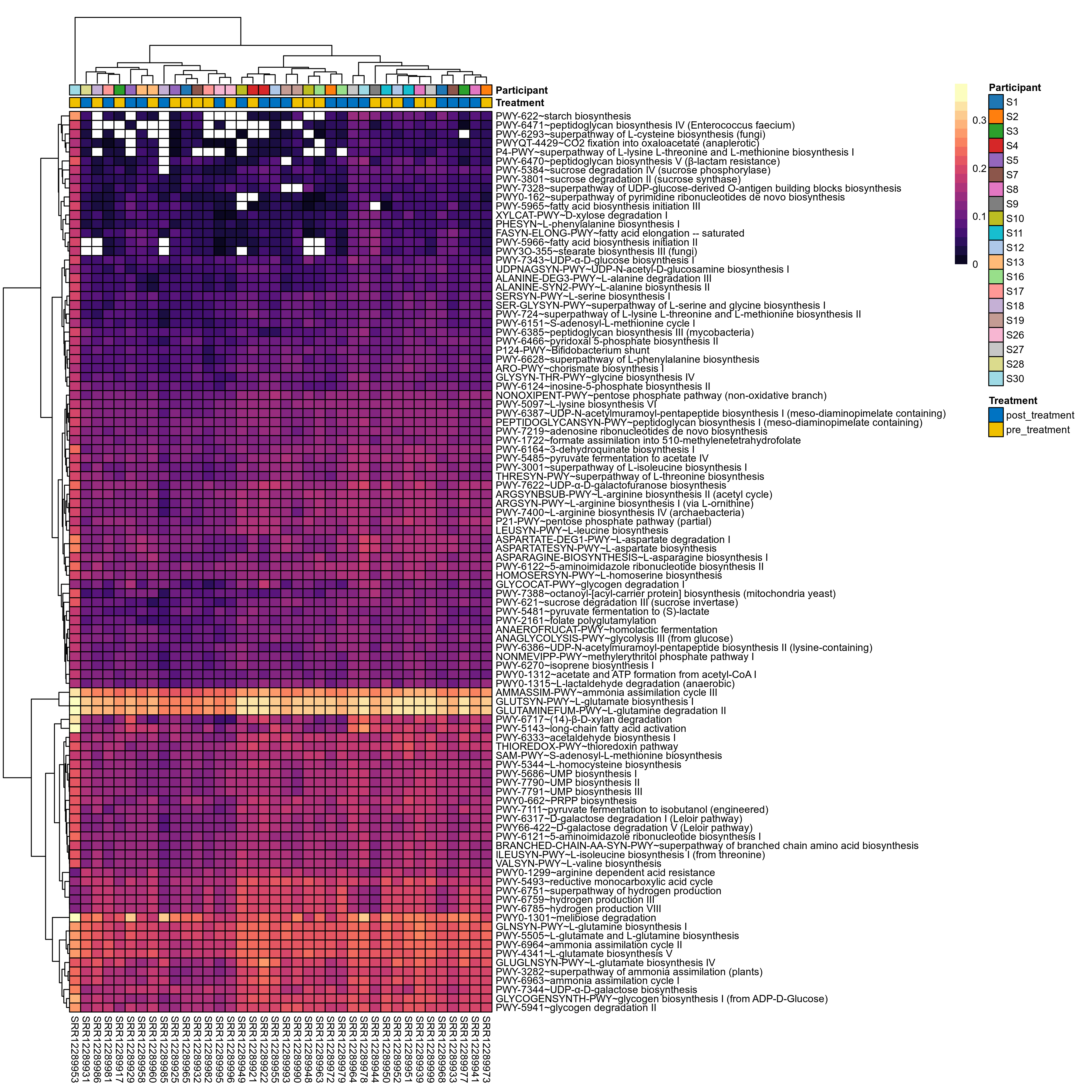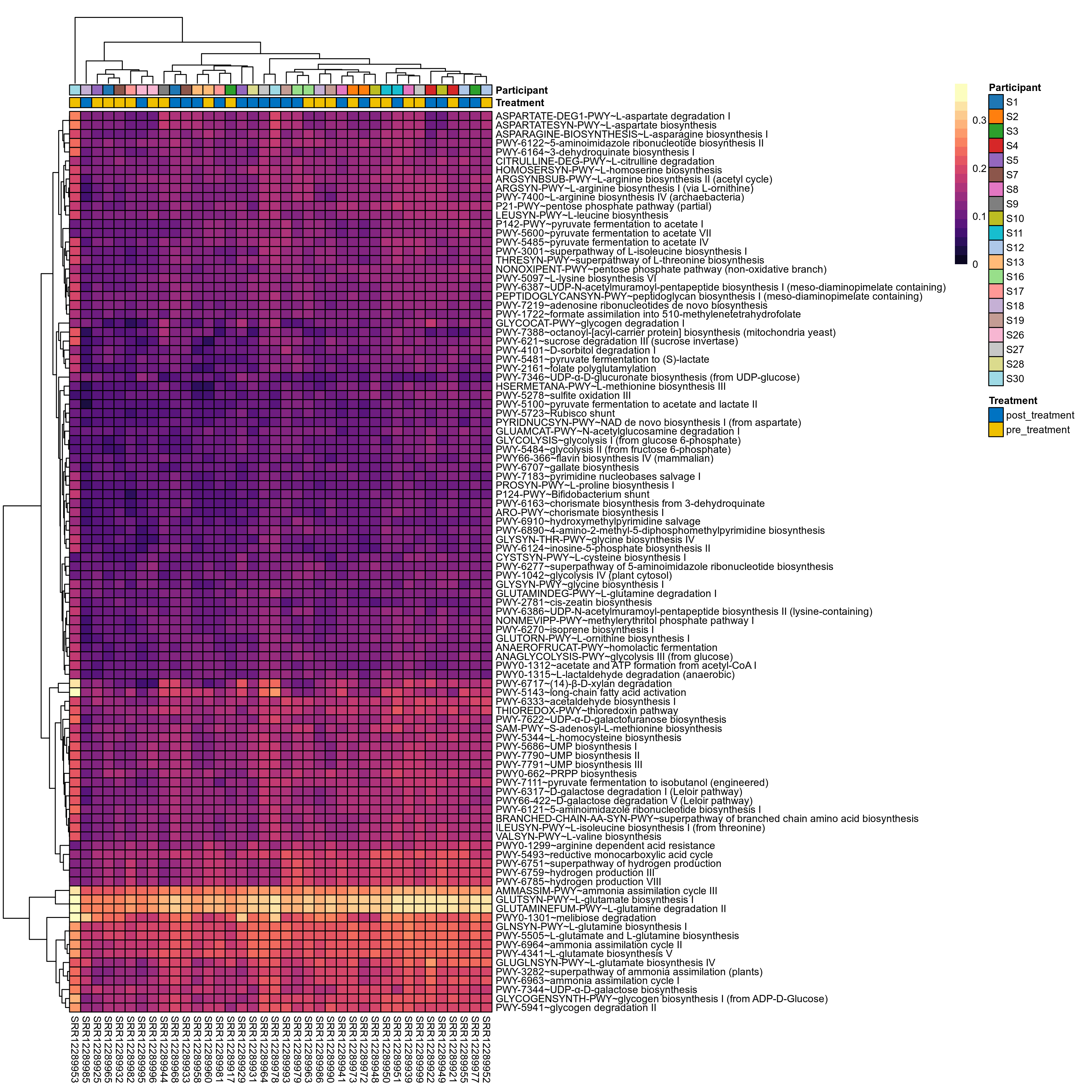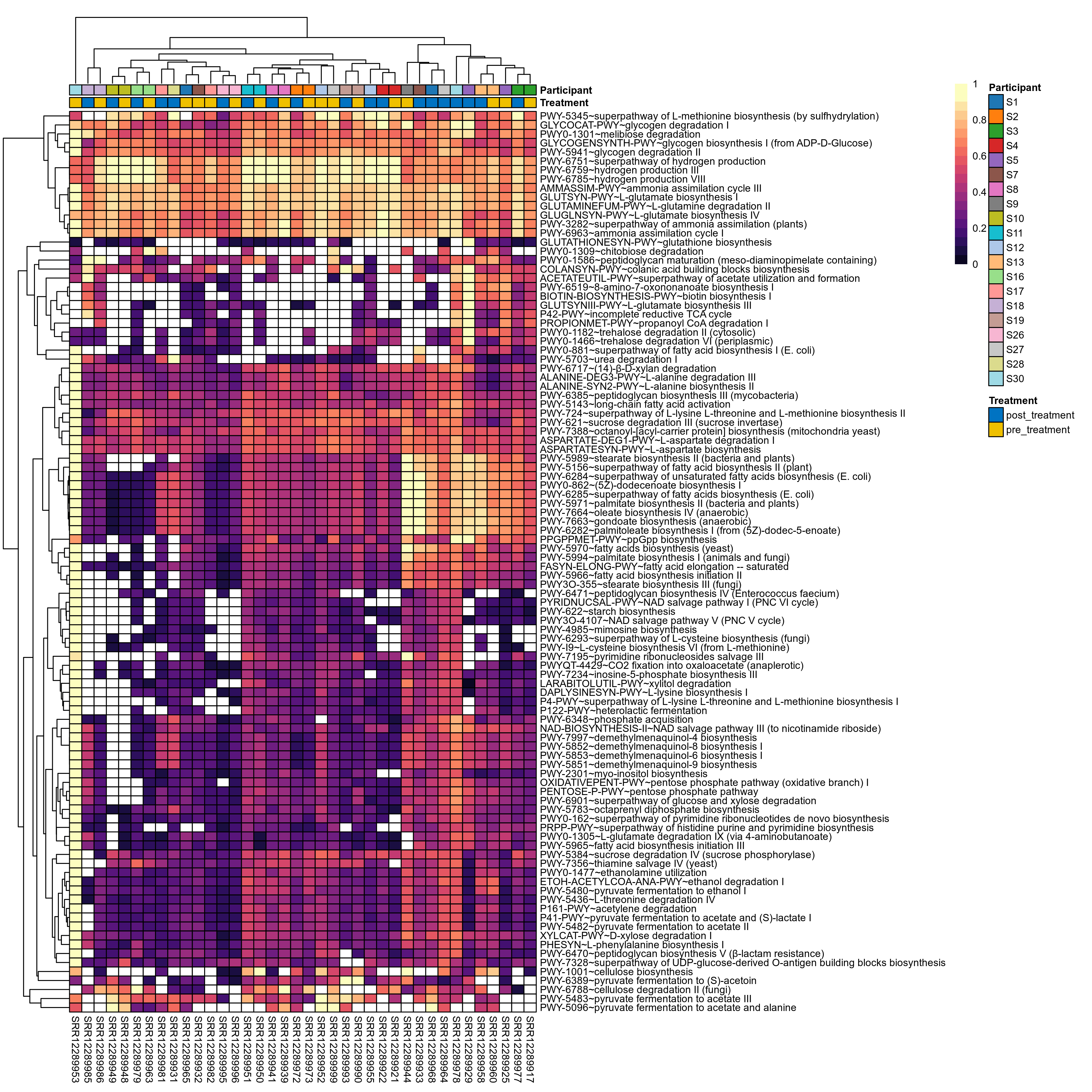 | PWY-6608~guanosine nucleotides degradation III | 0.19 | 0.97 | 1 | 0.096 | 0.91 | 1 | 0.0039 | 0.0039 | 0.0039 | 0.0037 | 0.0039 | 0.0024 | 0.0041 | 0.0039 | 0.0015 | 0.15 | 38 / 38 (100%) | 19 / 19 (100%) | 19 / 19 (100%) | 1 | 1 |