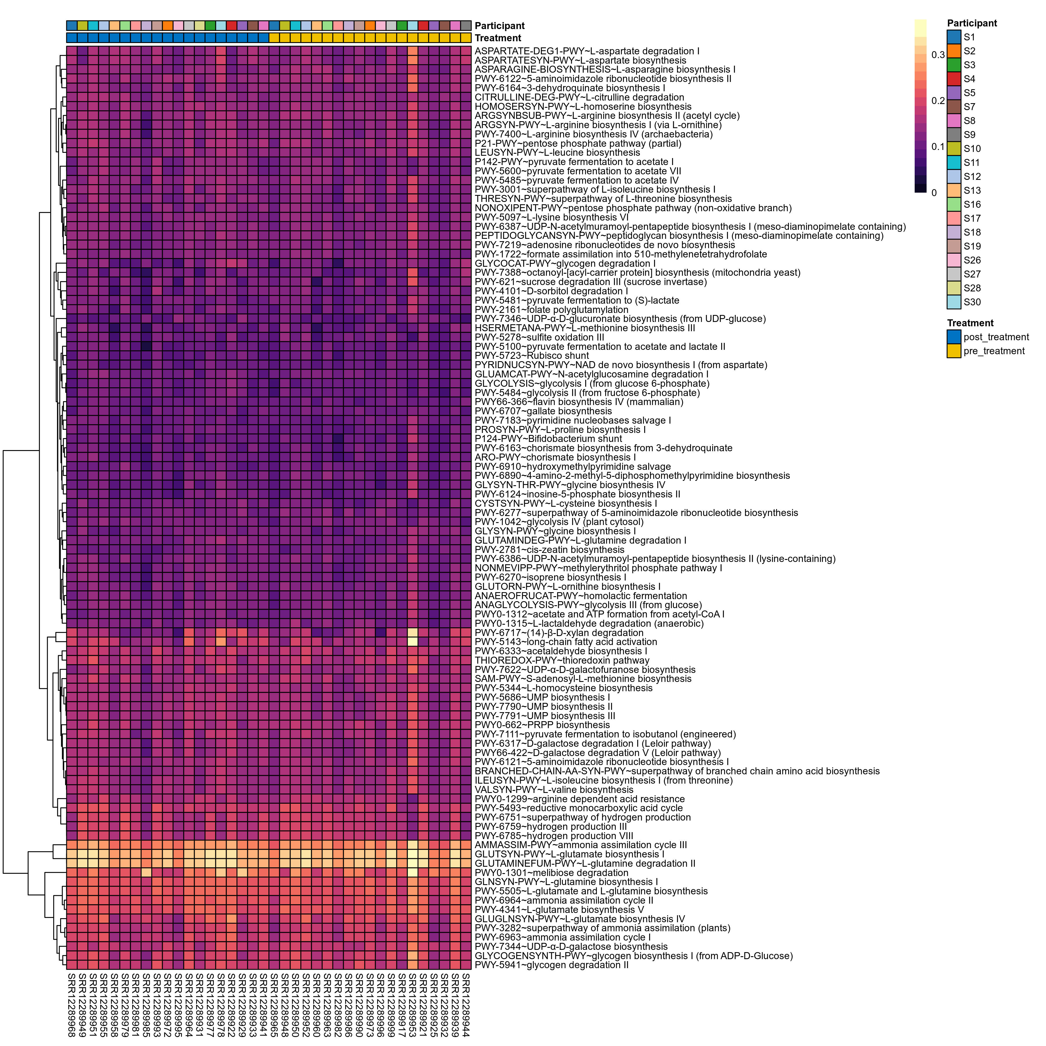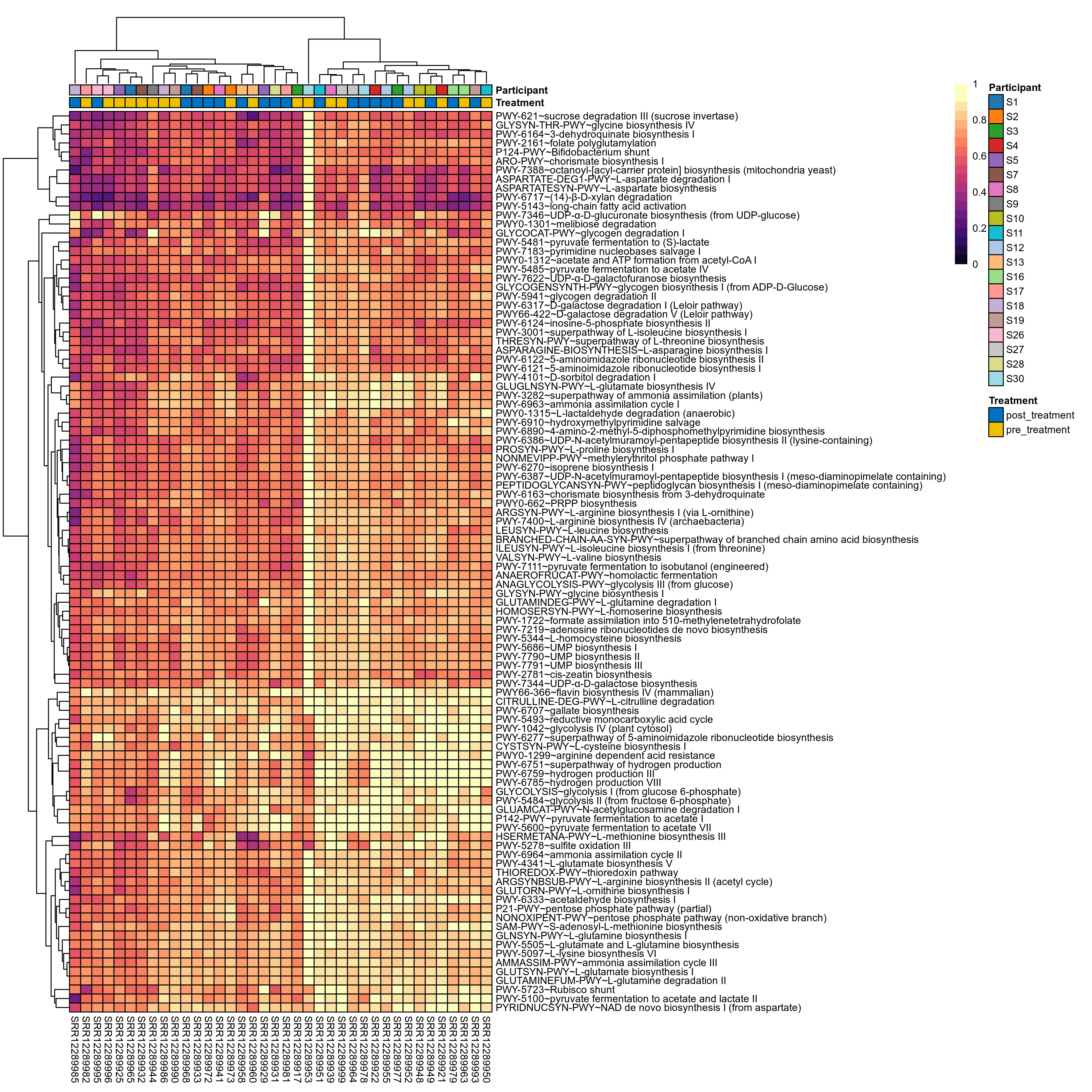 | PWY-6124~inosine-5-phosphate biosynthesis II | 0.85 | 0.97 | 1 | 0.59 | 0.94 | 1 | 0.012 | 0.012 | 0.01 | 0.012 | 0.012 | 0.0035 | 0.012 | 0.01 | 0.0048 | 0 | 38 / 38 (100%) | 19 / 19 (100%) | 19 / 19 (100%) | 1 | 1 |