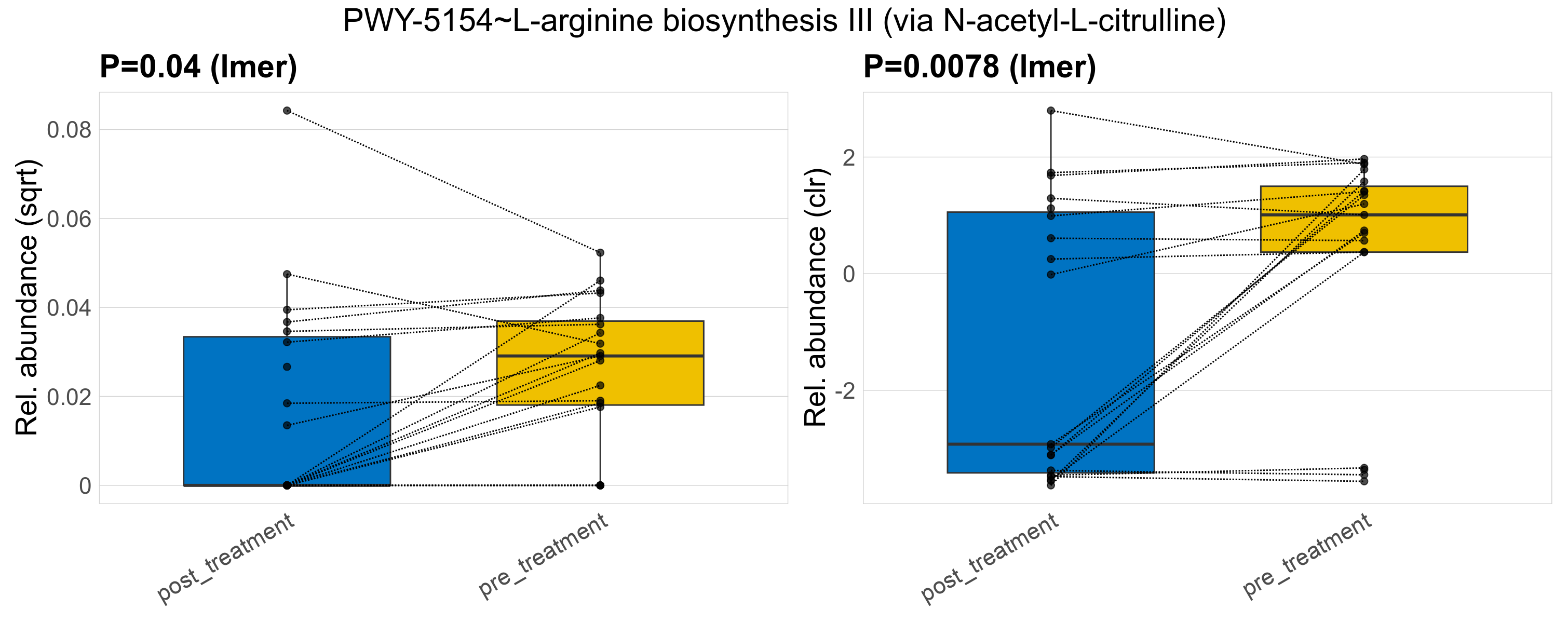| CITRULLINE-DEG-PWY~L-citrulline degradation | 0.45 | 0.97 | 1 | 0.32 | 0.91 | 1 | 0.019 | 0.019 | 0.019 | 0.02 | 0.02 | 0.0041 | 0.019 | 0.019 | 0.0032 | -0.074 | 38 / 38 (100%) | 19 / 19 (100%) | 19 / 19 (100%) | 1 | 1 |