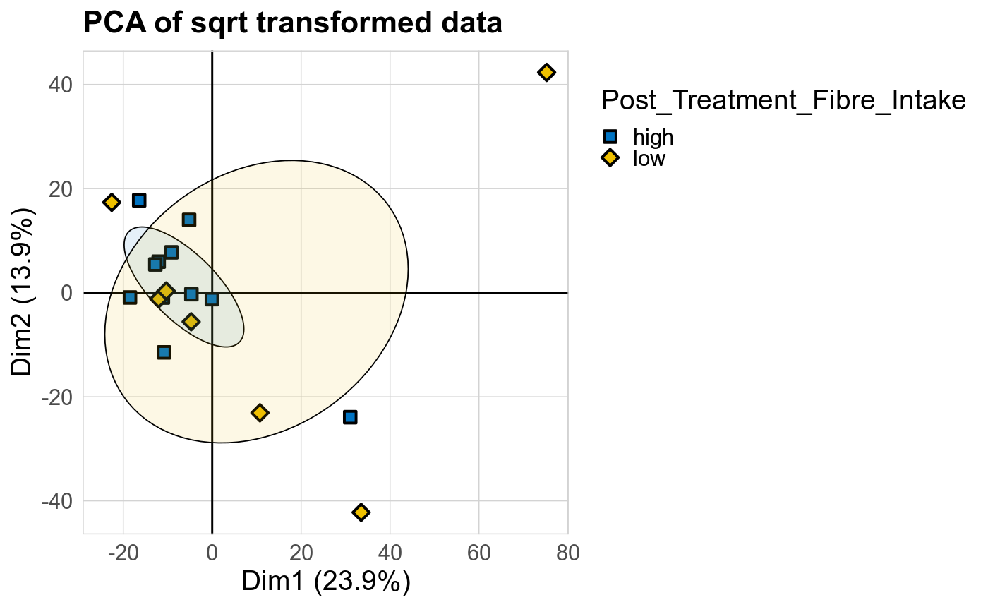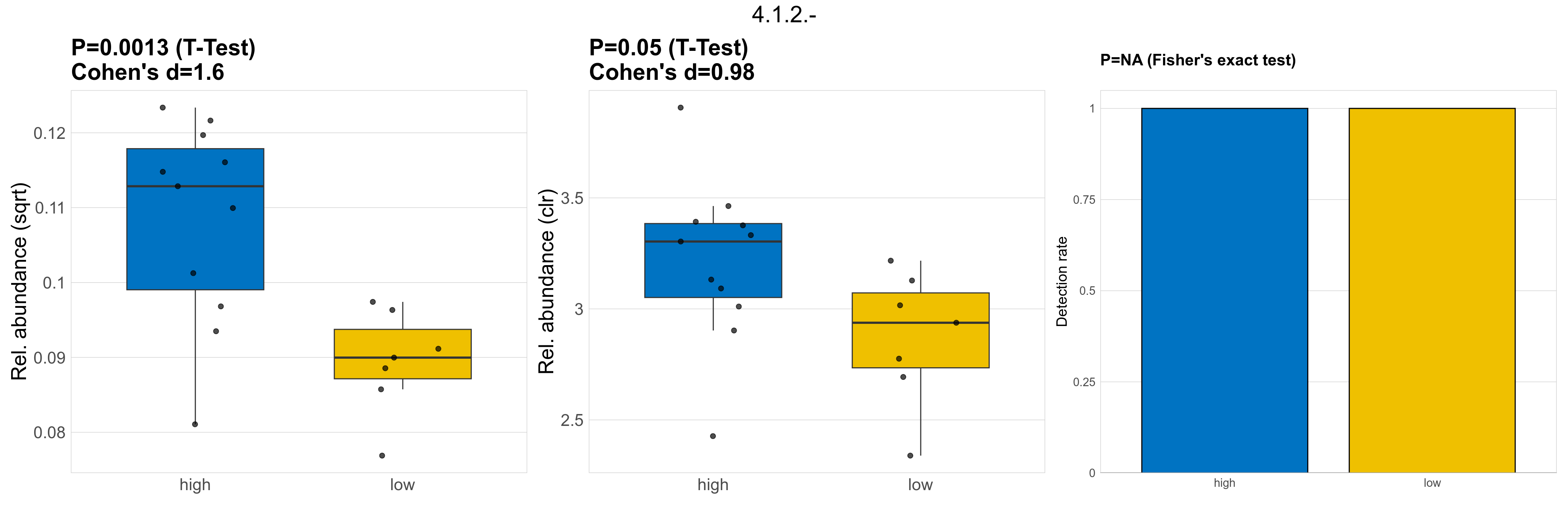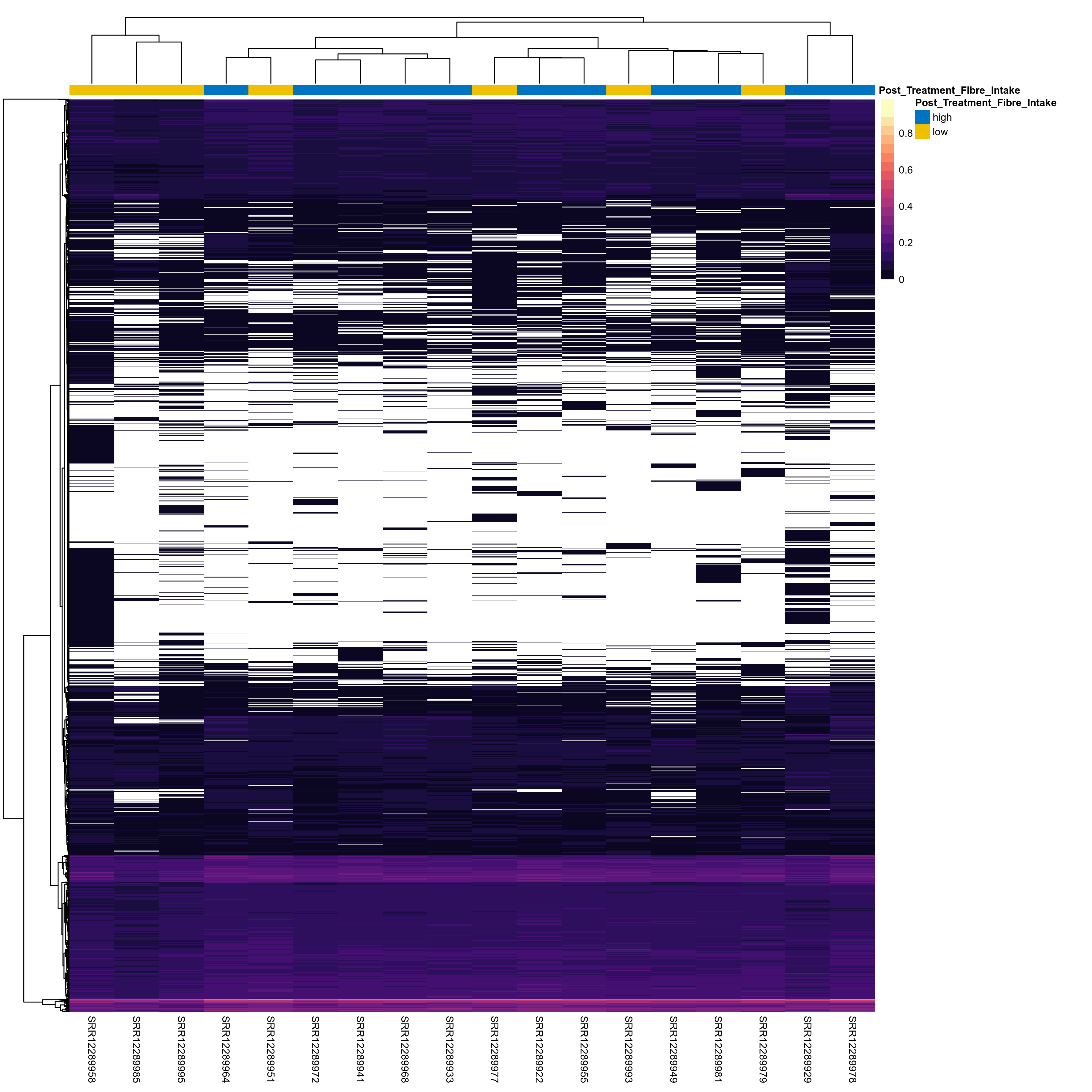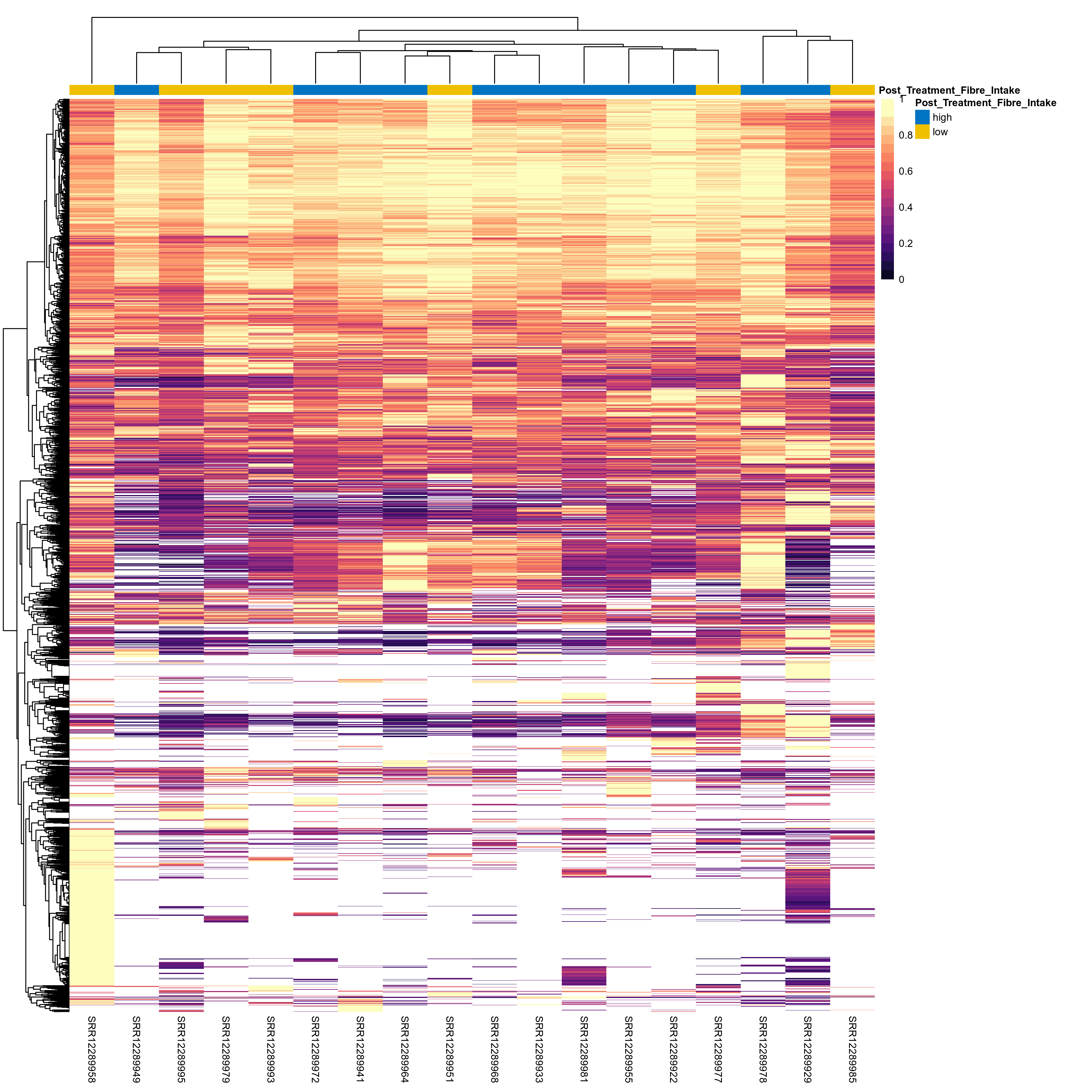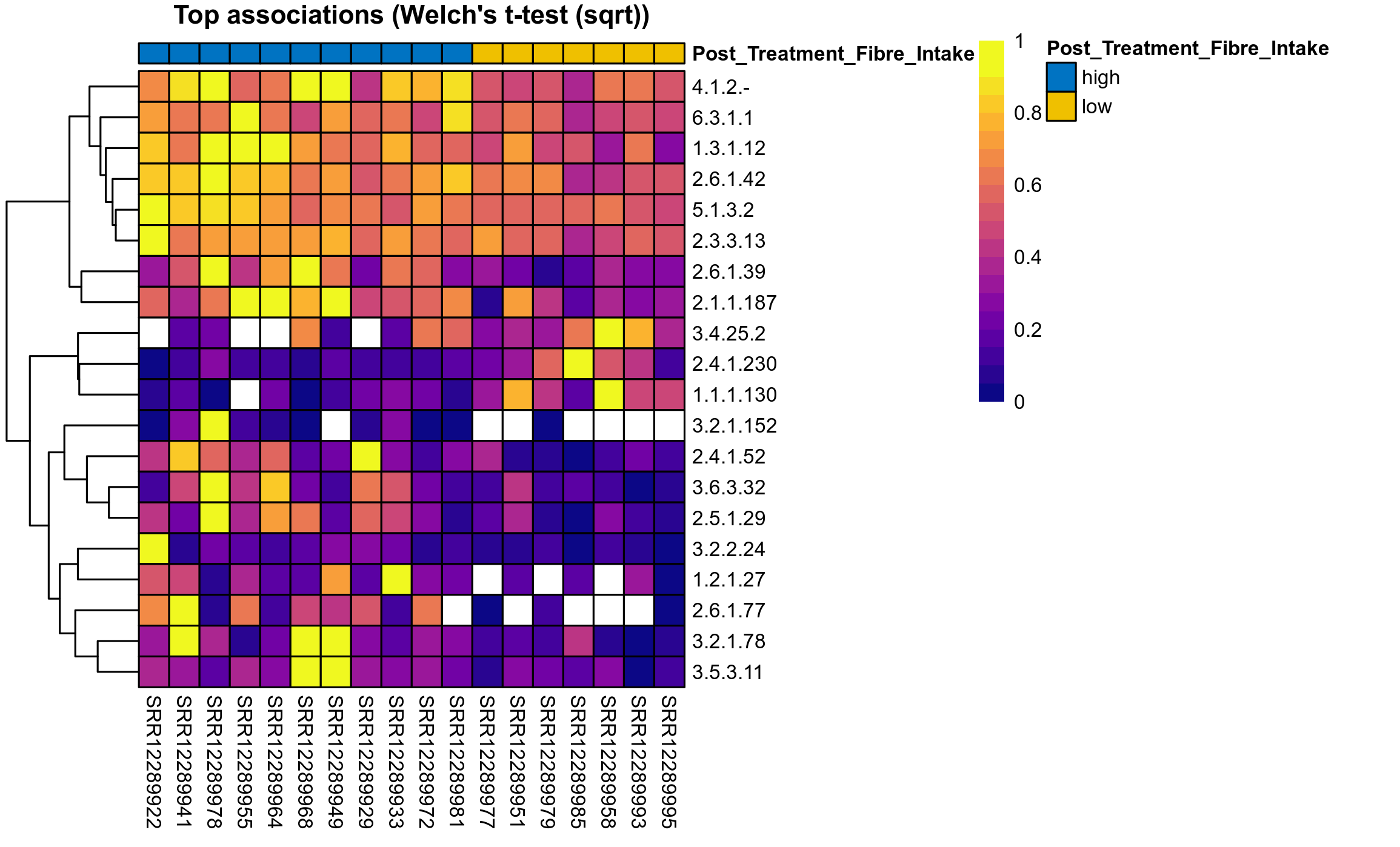 | Index | rarefiedTo | P Welch's t-test | Mean Pos | Mean Abundance | Median Abundance | Mean Post_Treatment_Fibre_Intakehigh | Median Post_Treatment_Fibre_Intakehigh | SD Post_Treatment_Fibre_Intakehigh | Mean Post_Treatment_Fibre_Intakelow | Median Post_Treatment_Fibre_Intakelow | SD Post_Treatment_Fibre_Intakelow | Fold Change Log2(Post_Treatment_Fibre_Intakelow/Post_Treatment_Fibre_Intakehigh) | Positive samples | Positive Post_Treatment_Fibre_Intakehigh | Positive Post_Treatment_Fibre_Intakelow | Positive_Post_Treatment_Fibre_Intakehigh_percent | Positive_Post_Treatment_Fibre_Intakelow_percent |