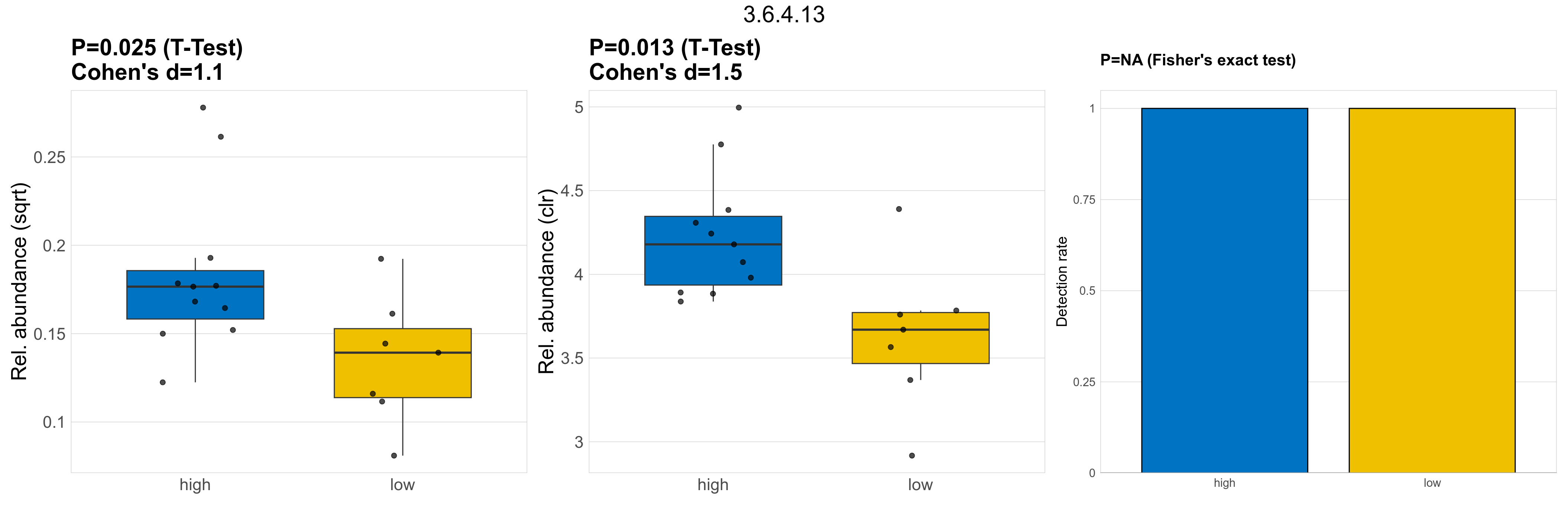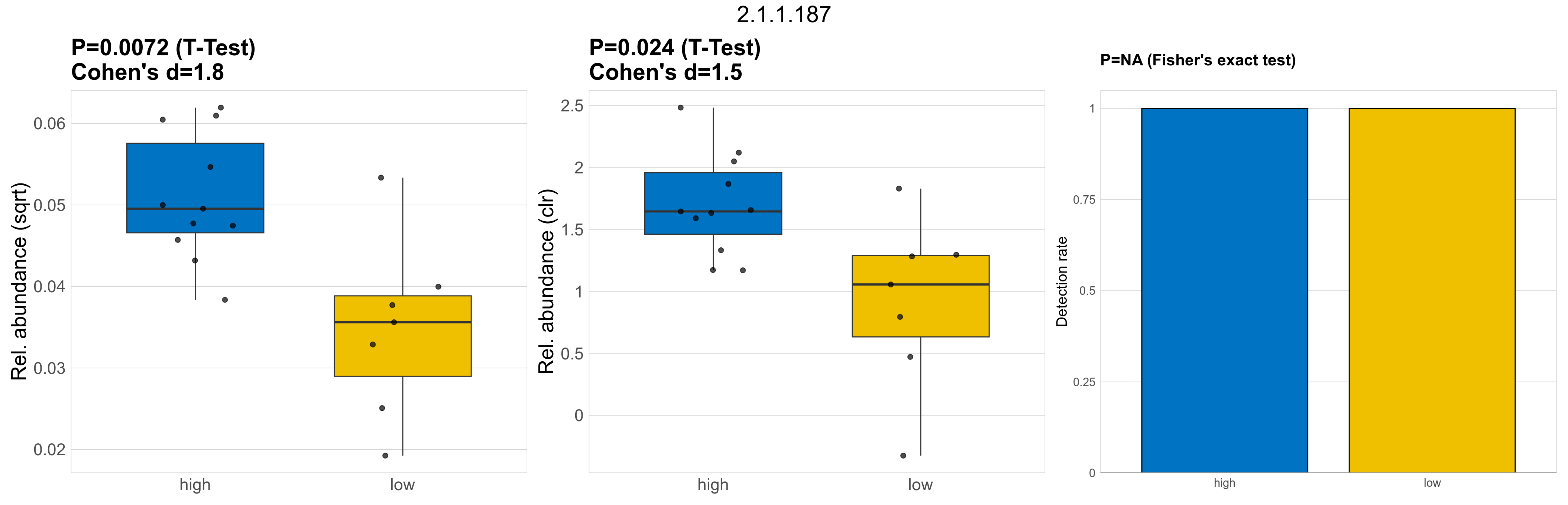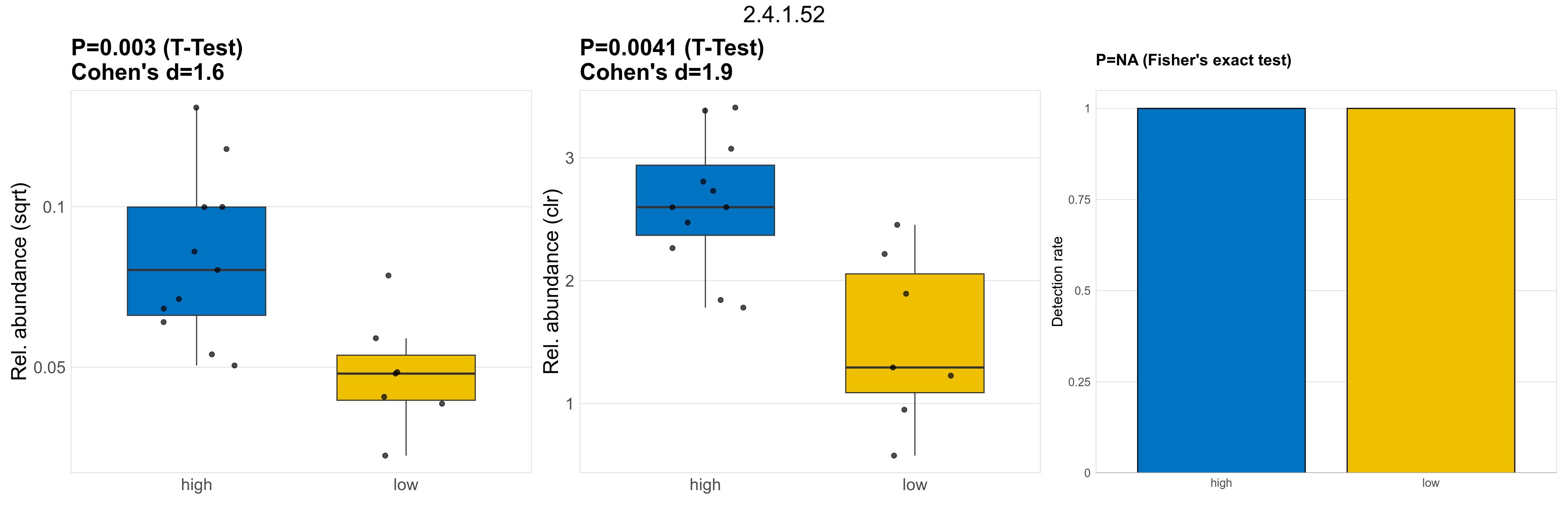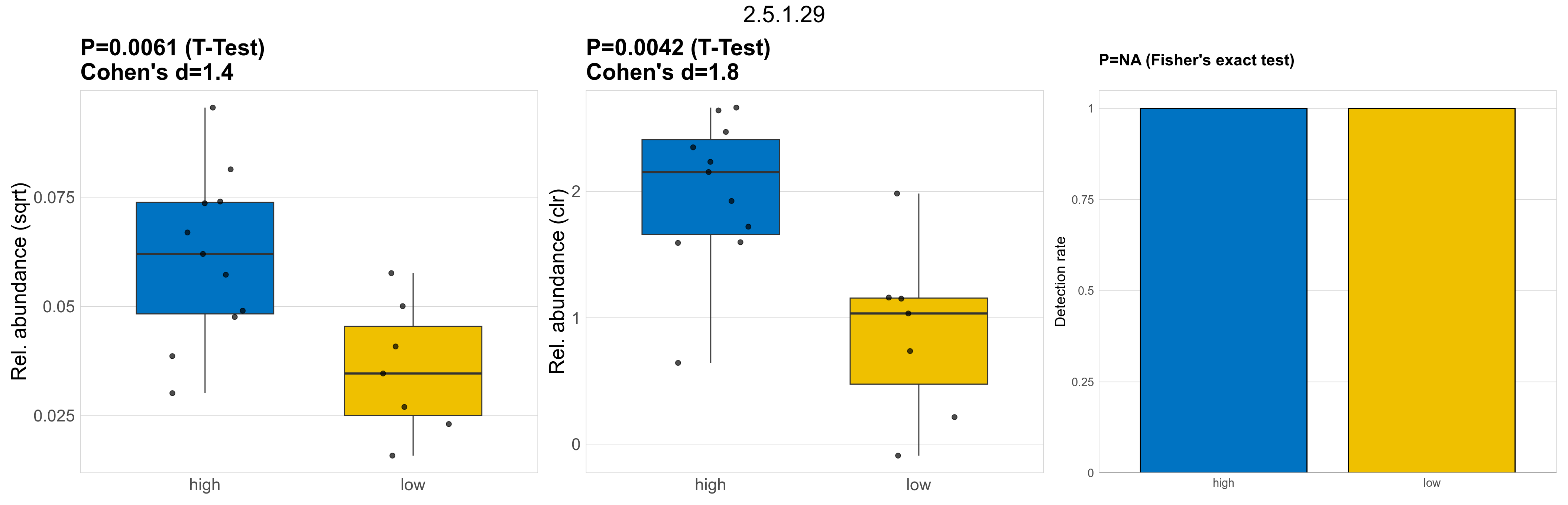 | Function | Annotation | P Welch's t-test (sqrt) | FDR Welch's t-test (sqrt) | Pbonf Welch's t-test (sqrt) | Cohen's d Welch's t-test (sqrt) | P Welch's t-test (clr) | FDR Welch's t-test (clr) | Pbonf Welch's t-test (clr) | Cohen's d Welch's t-test (clr) | P Fisher's exact test | FDR Fisher's exact test | Pbonf Fisher's exact test | P Welch's t-test (ALDEx2) | FDR Welch's t-test (ALDEx2) | P Wilcoxon rank test (ALDEx2) | FDR Wilcoxon rank test (ALDEx2) | Mean Pos | Mean Abundance | Median Abundance | Mean Post_Treatment_Fibre_Intakehigh | Median Post_Treatment_Fibre_Intakehigh | SD Post_Treatment_Fibre_Intakehigh | Mean Post_Treatment_Fibre_Intakelow | Median Post_Treatment_Fibre_Intakelow | SD Post_Treatment_Fibre_Intakelow | Fold Change Log2(Post_Treatment_Fibre_Intakelow/Post_Treatment_Fibre_Intakehigh) | Positive samples | Positive Post_Treatment_Fibre_Intakehigh | Positive Post_Treatment_Fibre_Intakelow | Positive_Post_Treatment_Fibre_Intakehigh_percent | Positive_Post_Treatment_Fibre_Intakelow_percent |