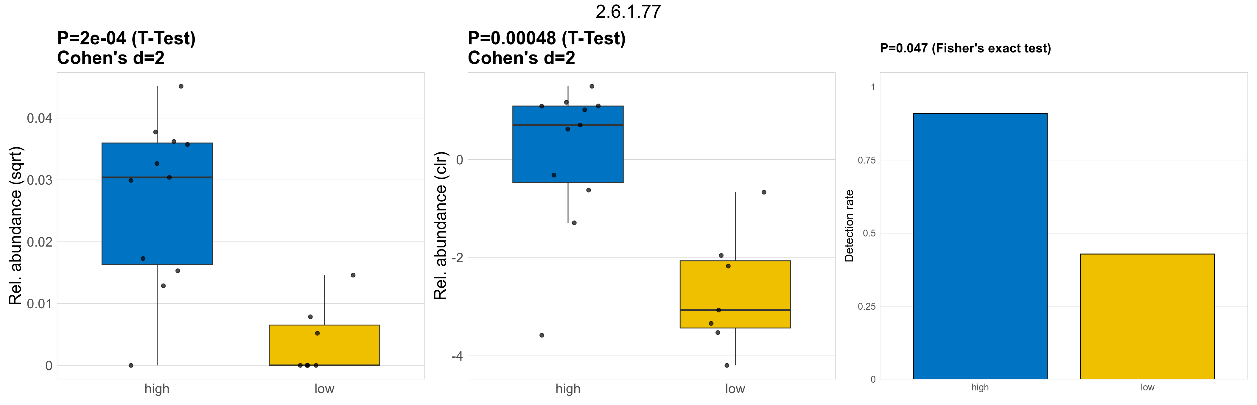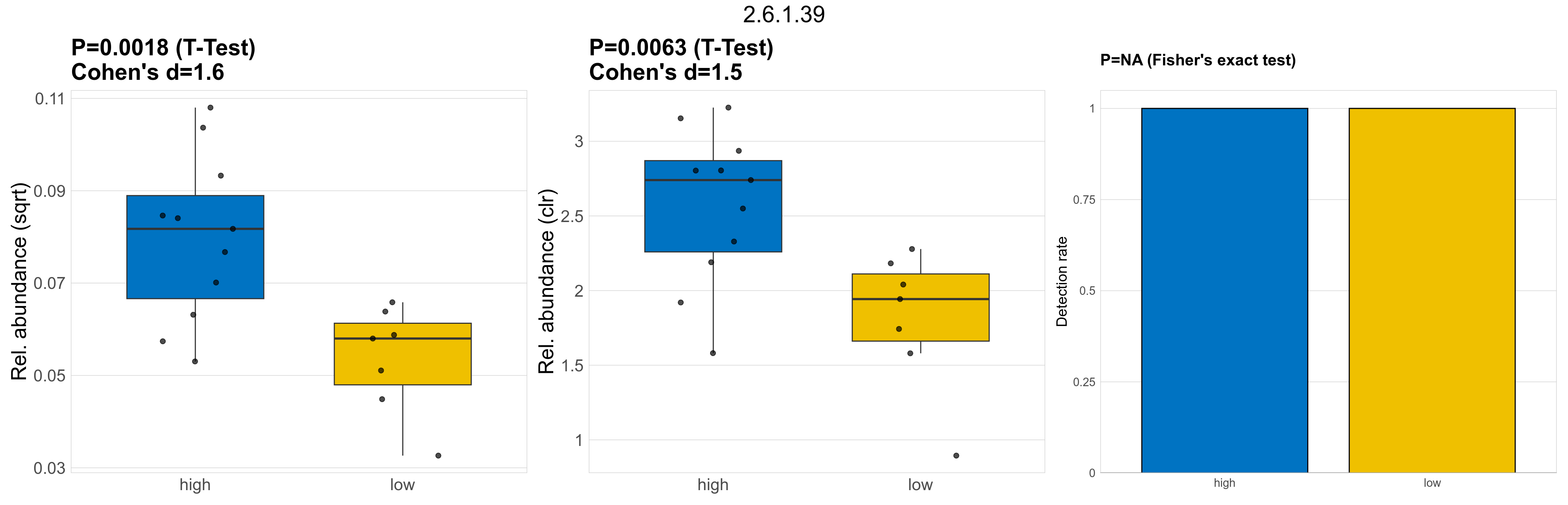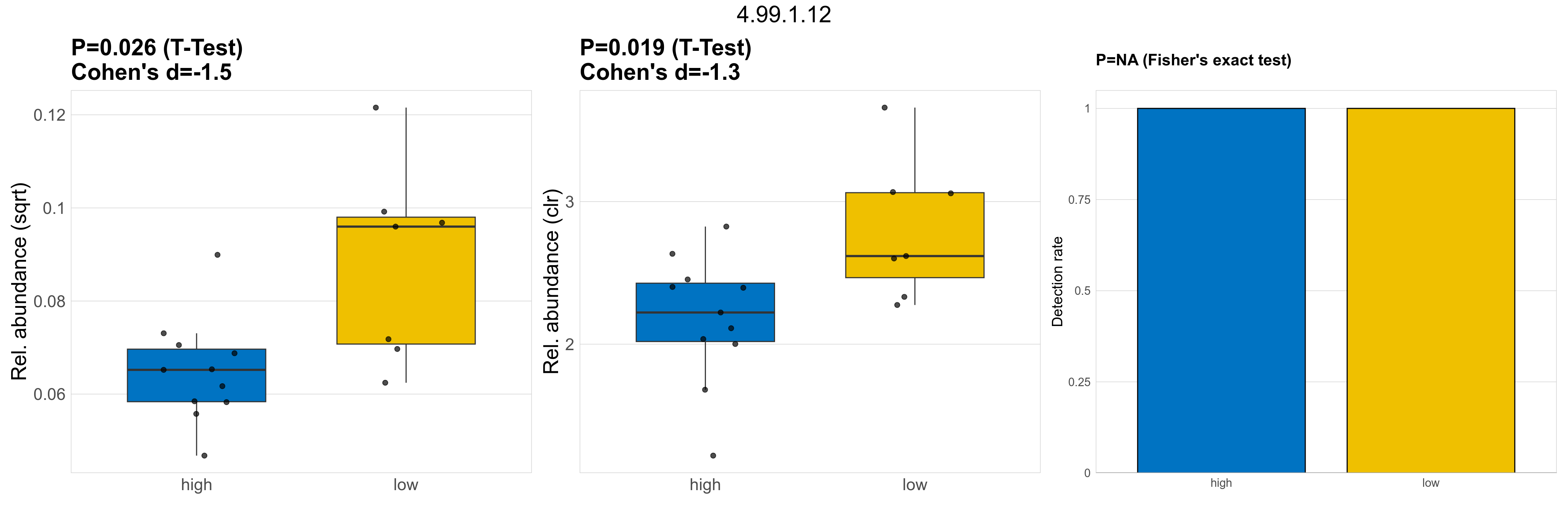 The following plots present the distribution of the top most differentially abundant microbial functions across all applied statistical analysis. Plots are ordered alphabetically.