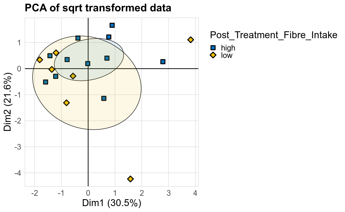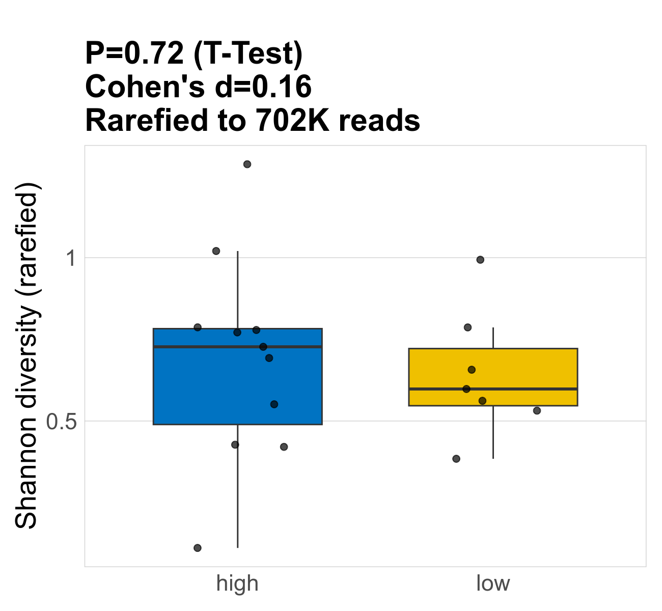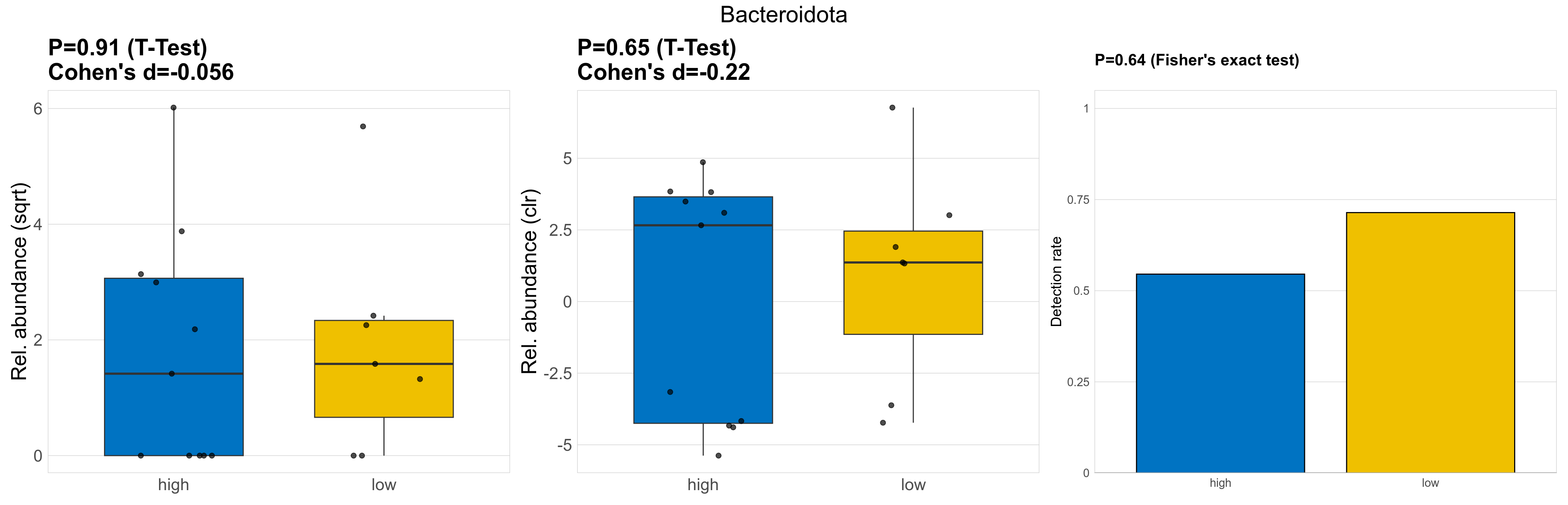 P Welch's t-test (sqrt): Differentially abundant species were identified by Welch's t-test.