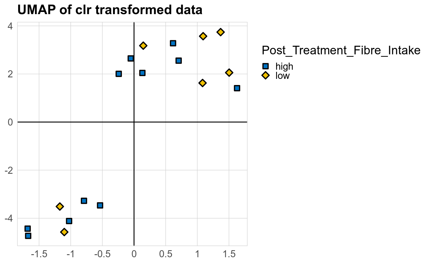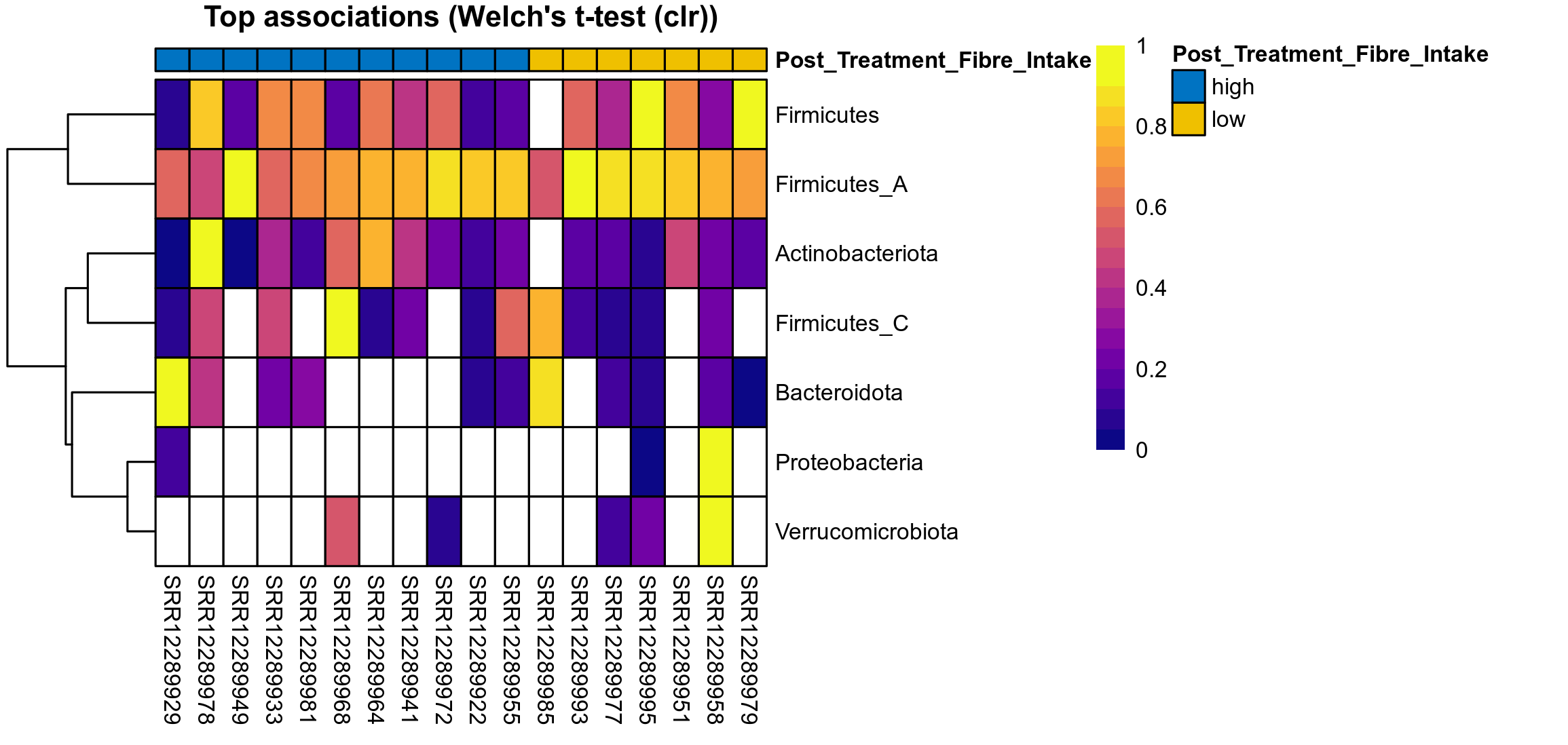 P Welch's t-test (clr): Differentially abundant species were identified by Welch's t-test.