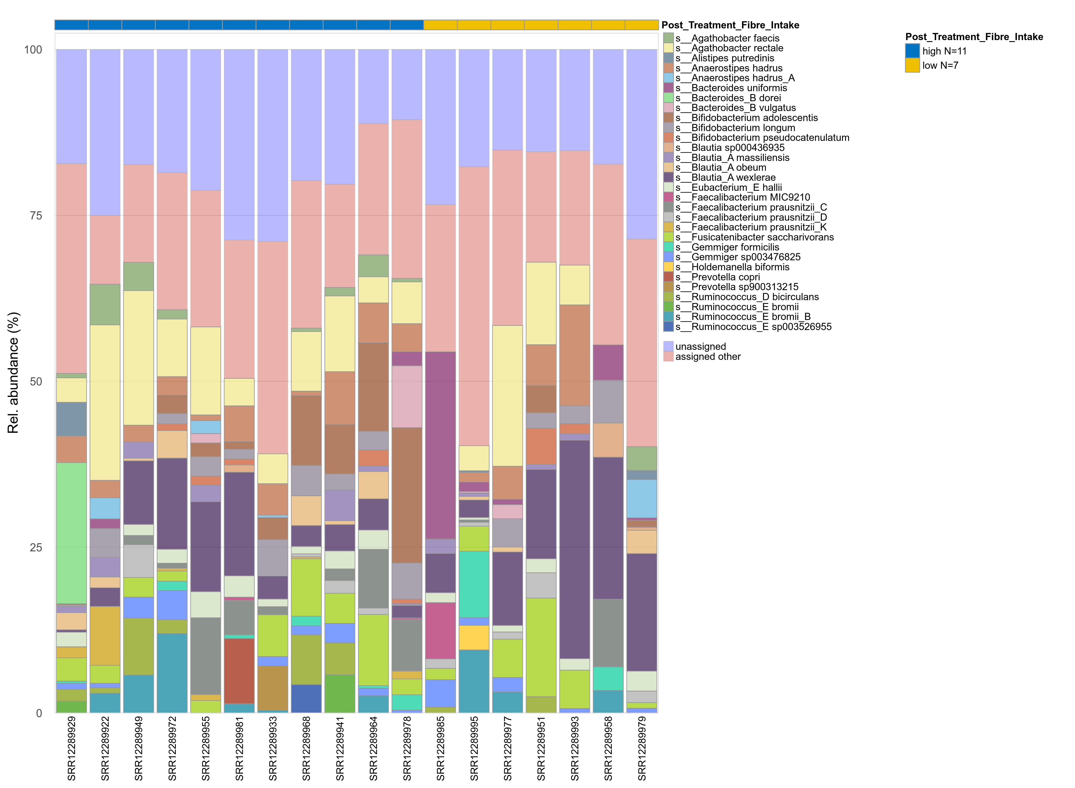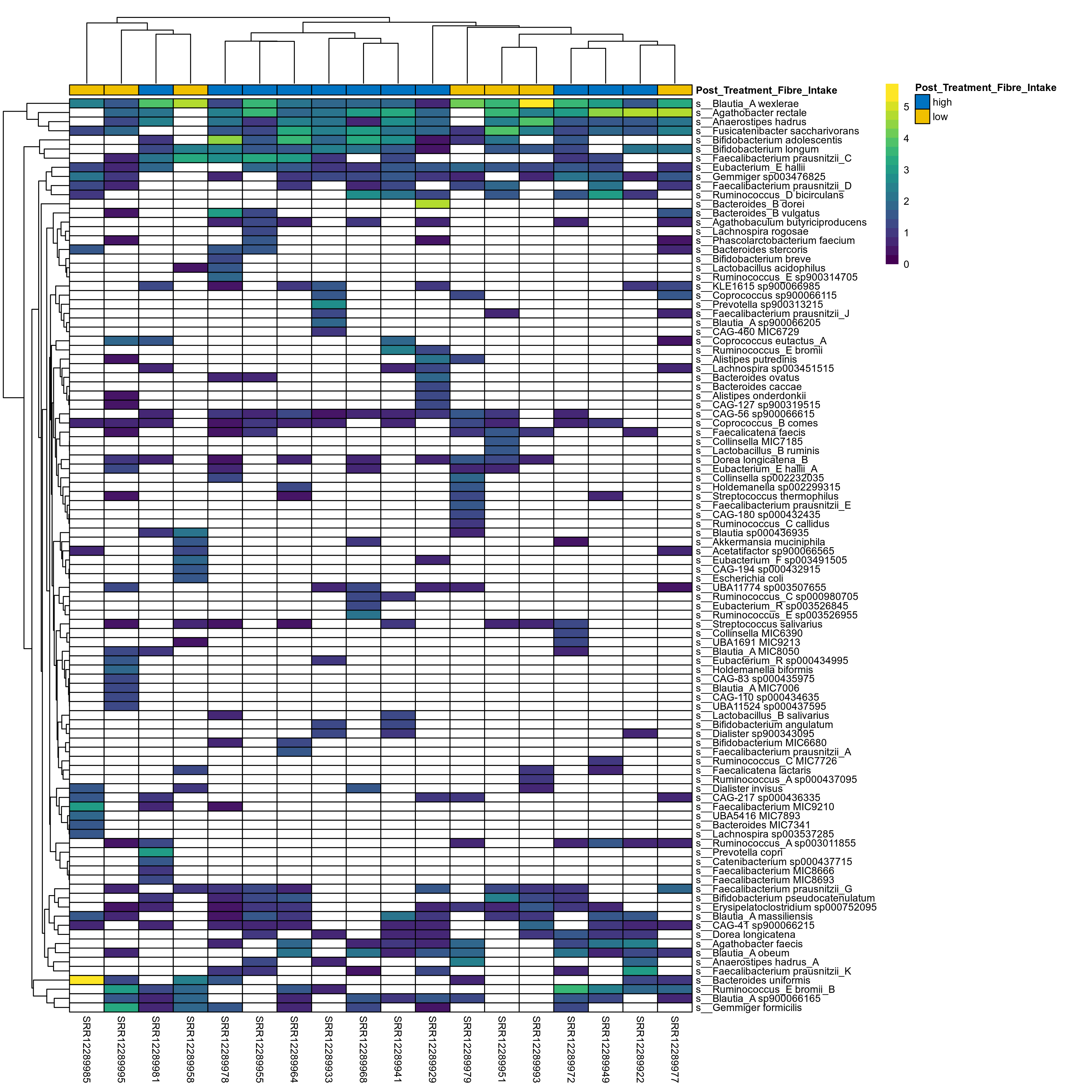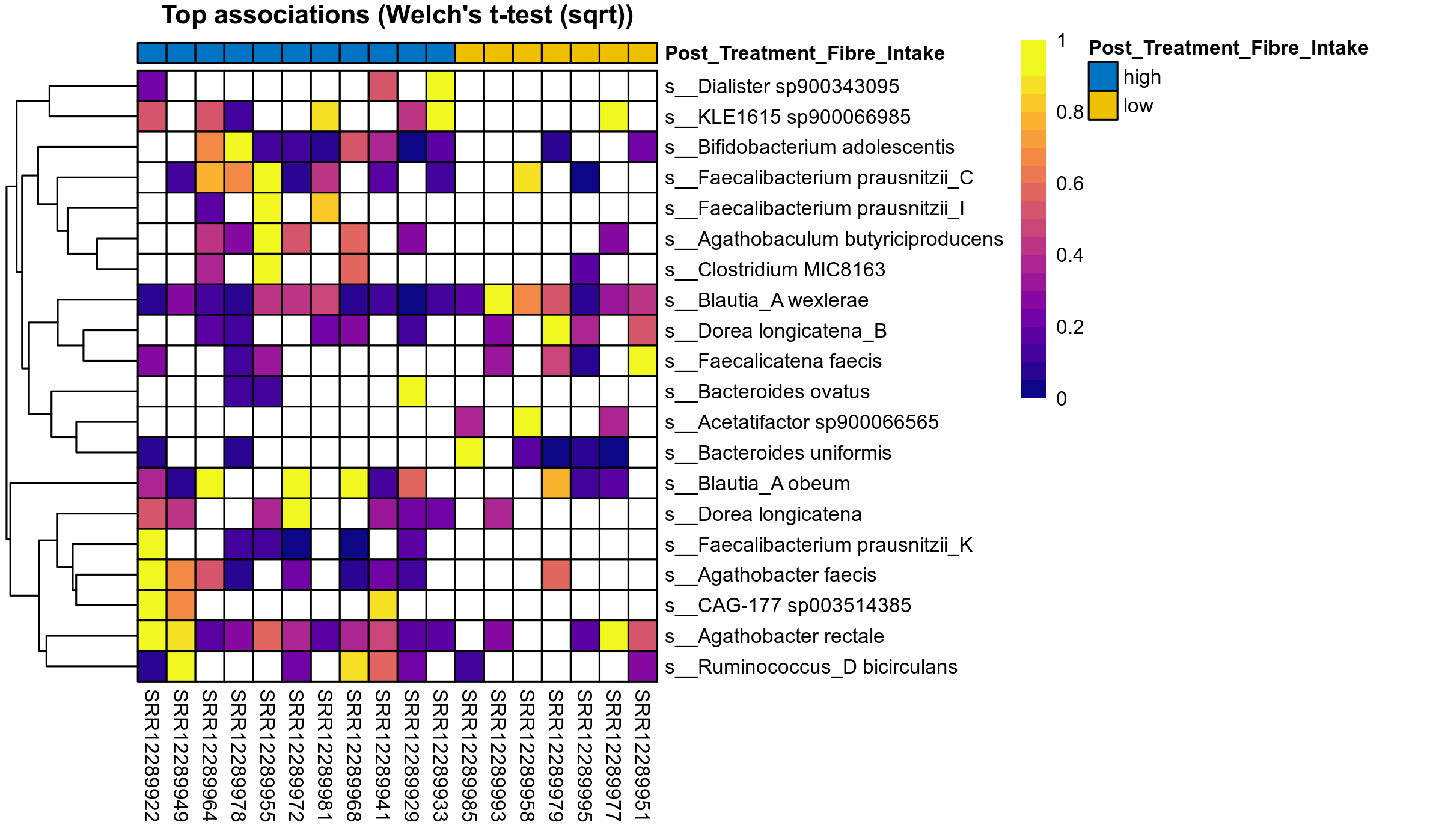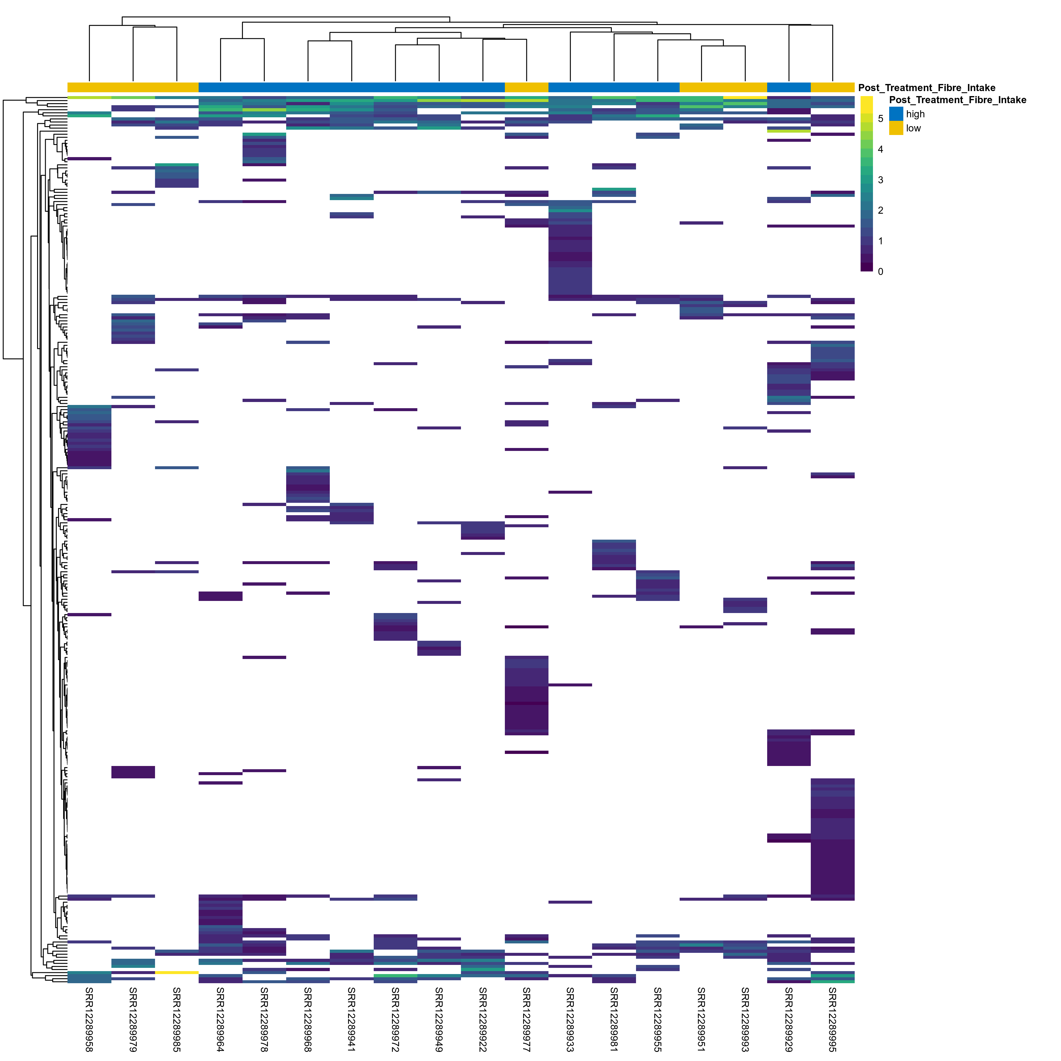| Index | rarefiedTo | P Welch's t-test | Mean Pos | Mean Abundance | Median Abundance | Mean Post_Treatment_Fibre_Intakehigh | Median Post_Treatment_Fibre_Intakehigh | SD Post_Treatment_Fibre_Intakehigh | Mean Post_Treatment_Fibre_Intakelow | Median Post_Treatment_Fibre_Intakelow | SD Post_Treatment_Fibre_Intakelow | Fold Change Log2(Post_Treatment_Fibre_Intakelow/Post_Treatment_Fibre_Intakehigh) | Positive samples | Positive Post_Treatment_Fibre_Intakehigh | Positive Post_Treatment_Fibre_Intakelow | Positive_Post_Treatment_Fibre_Intakehigh_percent | Positive_Post_Treatment_Fibre_Intakelow_percent |