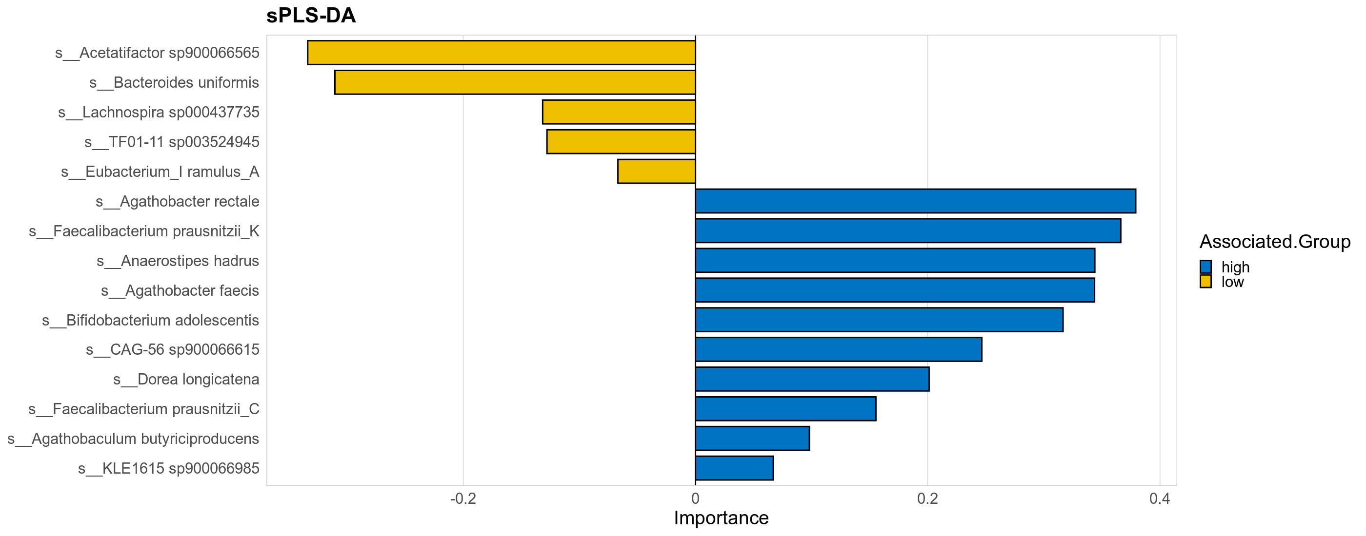 | s__Bifidobacterium longum | d__Bacteria; p__Actinobacteriota; c__Actinobacteria; o__Actinomycetales; f__Bifidobacteriaceae; g__Bifidobacterium | 0.4 | 0.86 | 1 | 0.47 | 0.23 | 0.79 | 1 | 0.7 | 0.25 | 0.97 | 1 | 0.27 | 0.7 | 0.74 | 0.93 | 3.3 | 2.6 | 2.6 | 2.8 | 2.8 | 1.9 | 2.2 | 2.3 | 2.5 | -0.35 | 14 / 18 (78%) | 10 / 11 (91%) | 4 / 7 (57%) | 0.909 | 0.571 |
